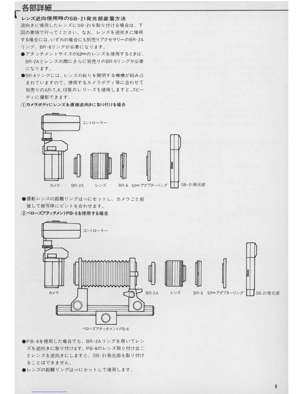 Nikon SB-21 - Detailed Sections - Lens Attachment; Attaching SB-21 with Reversed Lens