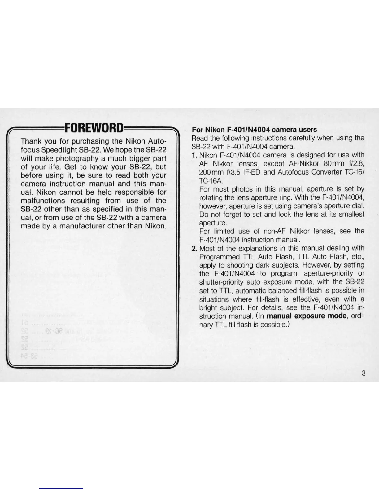 For Nikon F-401/N4004 camera users