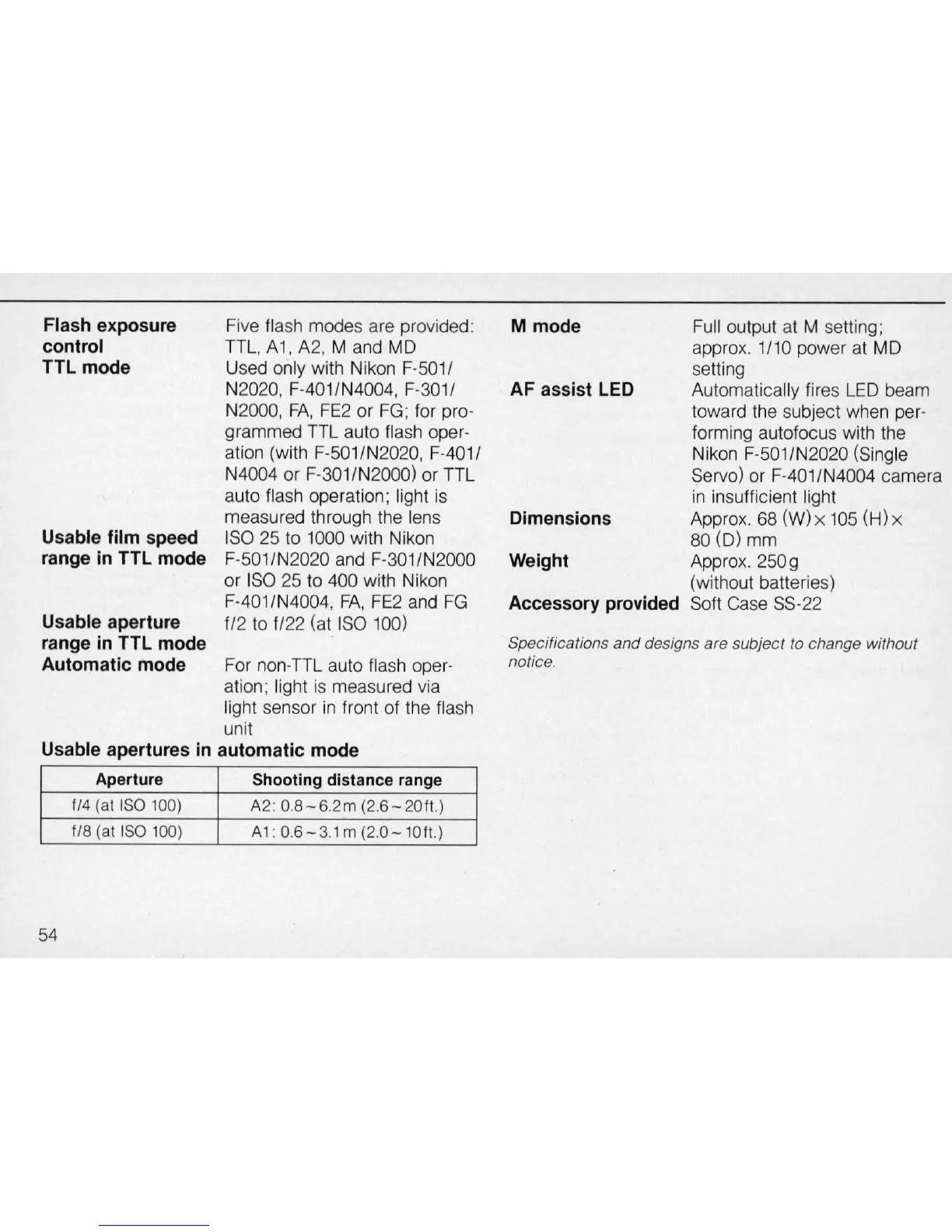 grammed TTL auto flash oper-
