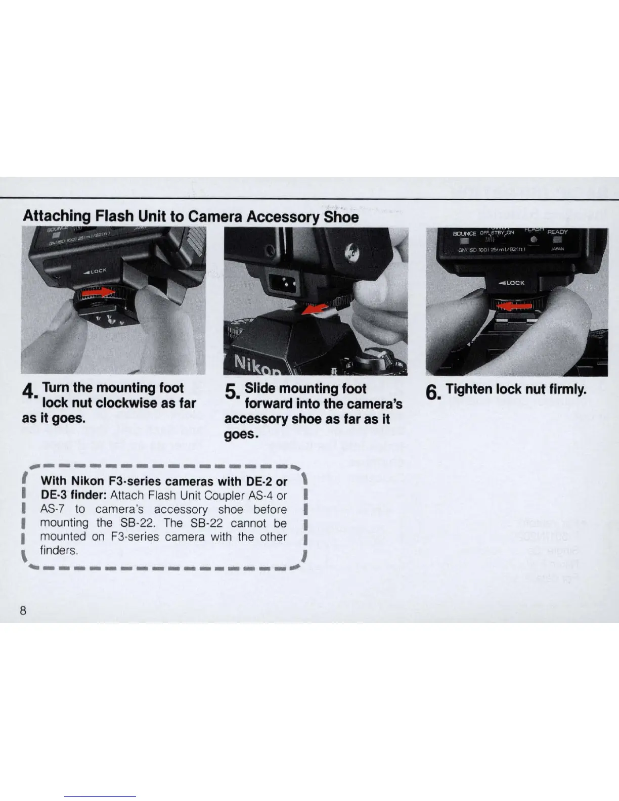 Nikon SB-22 - Attaching Flash Unit to Camera Accessory Shoe
