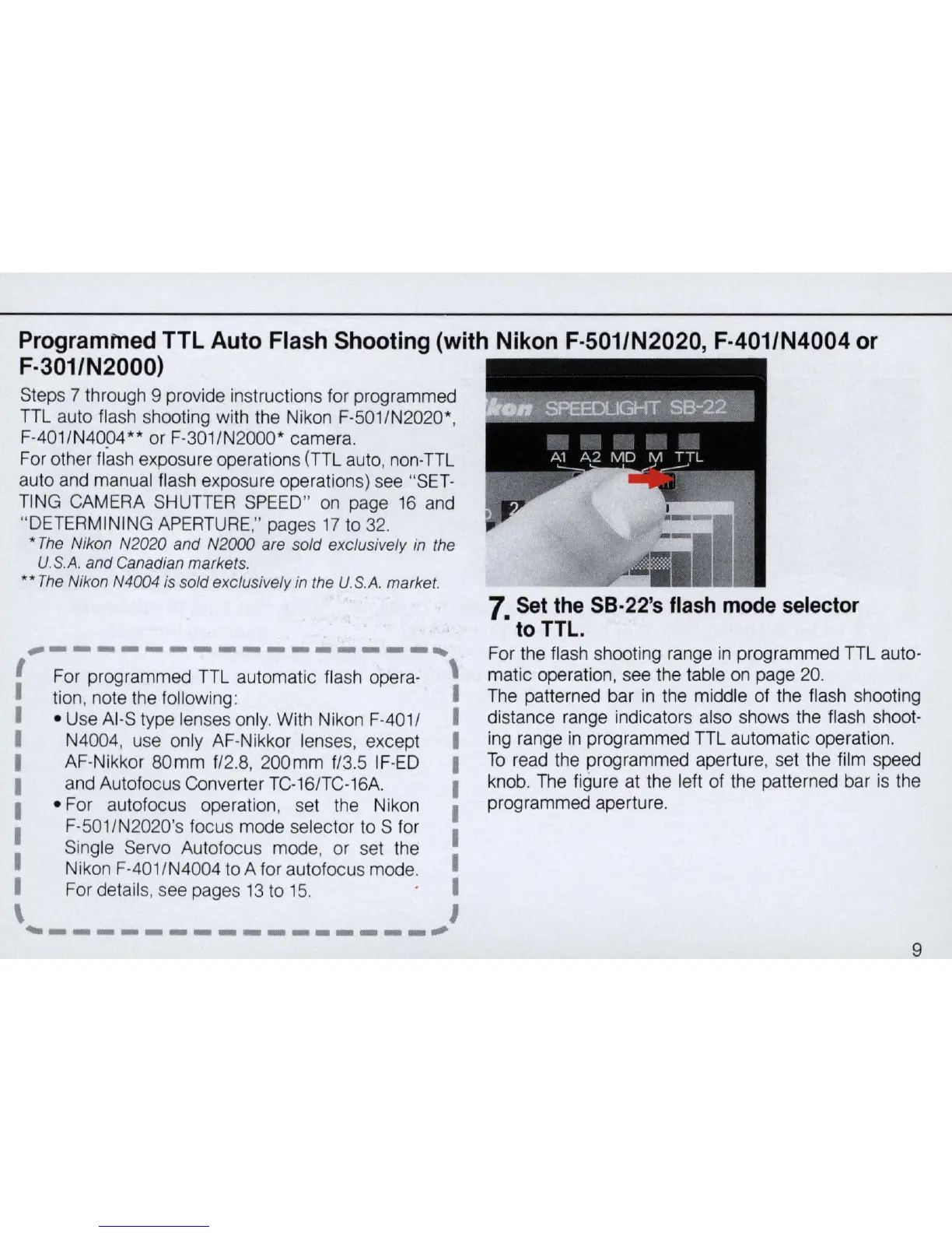 Programmed TTL Auto Flash Shooting (with Nikon F-501/N2020, F-401/N4004 or