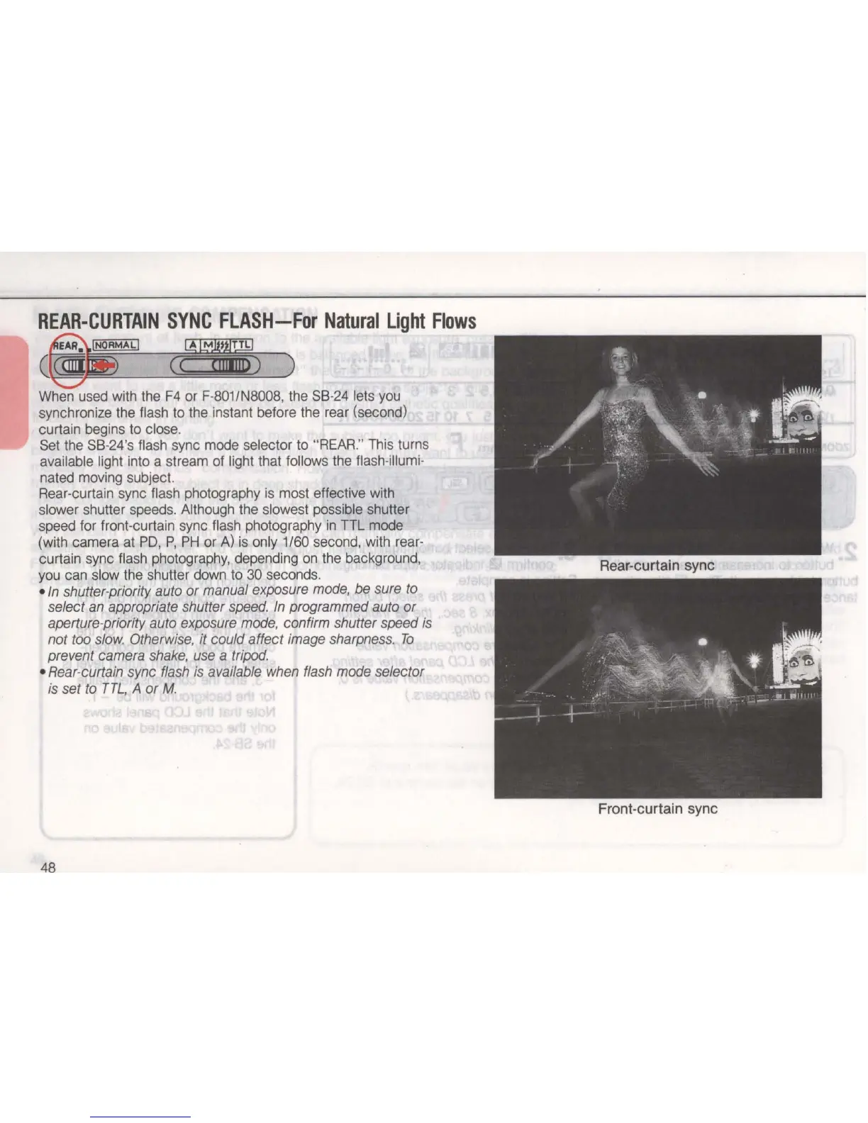 Set the S8-24's flash sync mode selector to "REAR." This turns