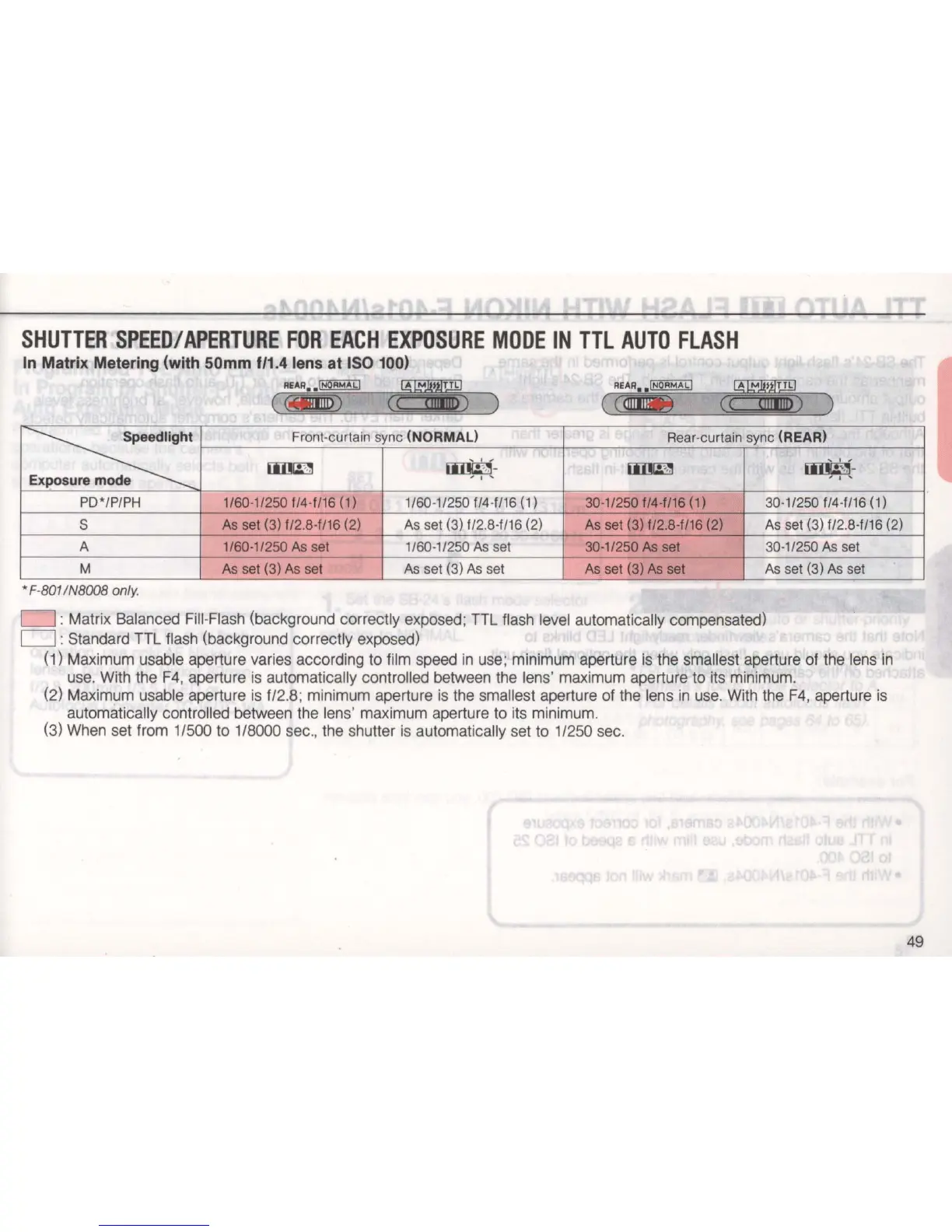 Matrix Balanced Fill-Flash (background correctly exposed; TTL flash level automatically compensated)