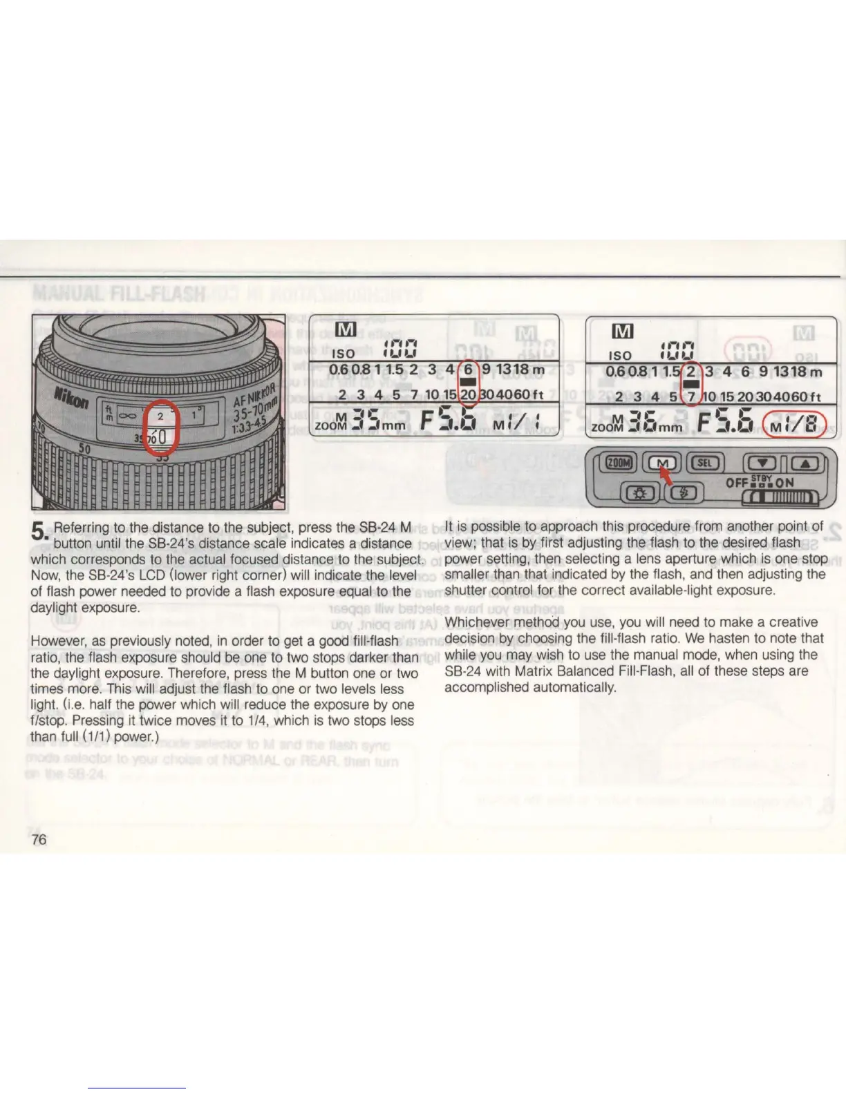 • button until the SB-24's distance scale indicates a distance