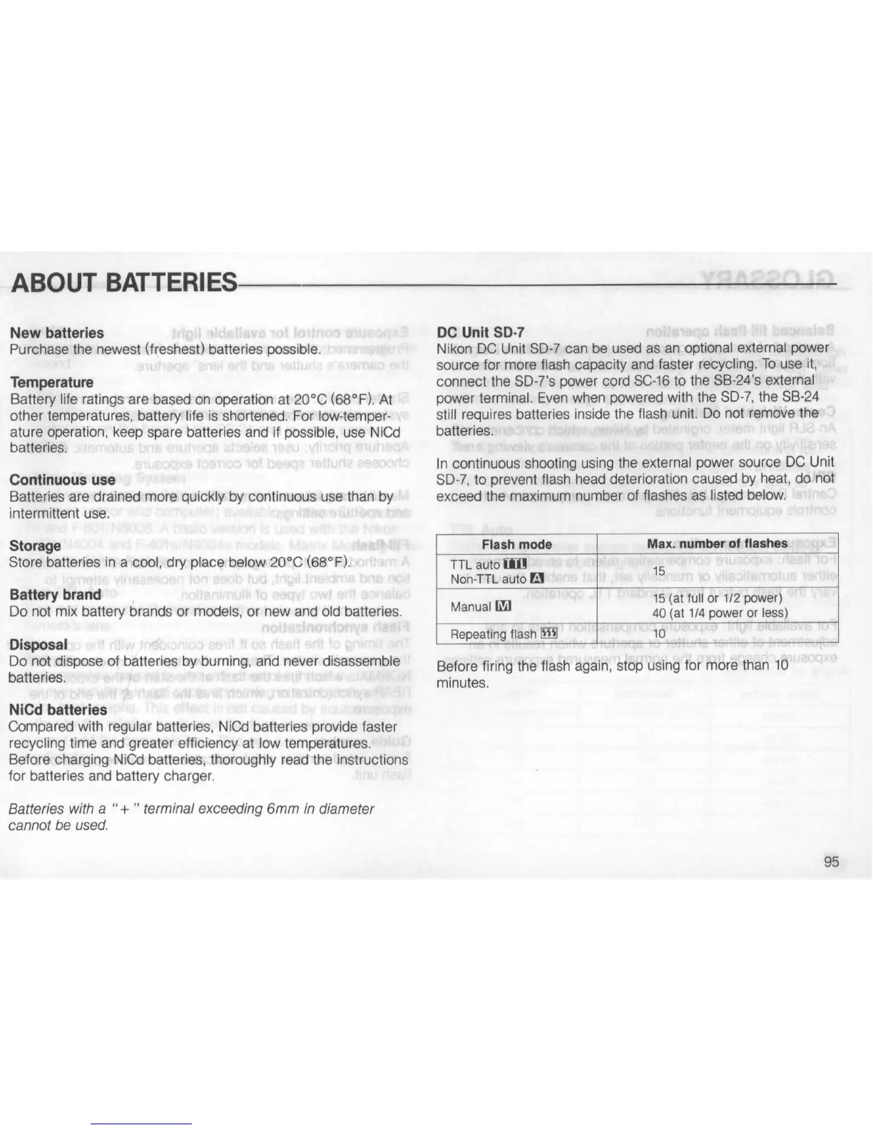 ature operation, keep spare batteries and if possible, use NiCd