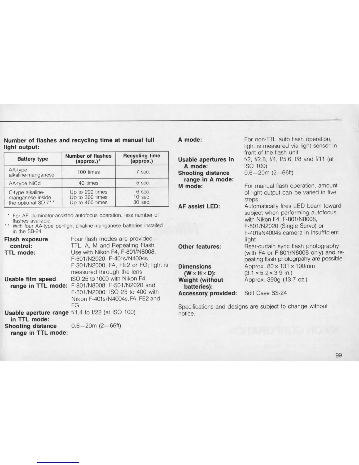 For non-TTL auto flash operation,