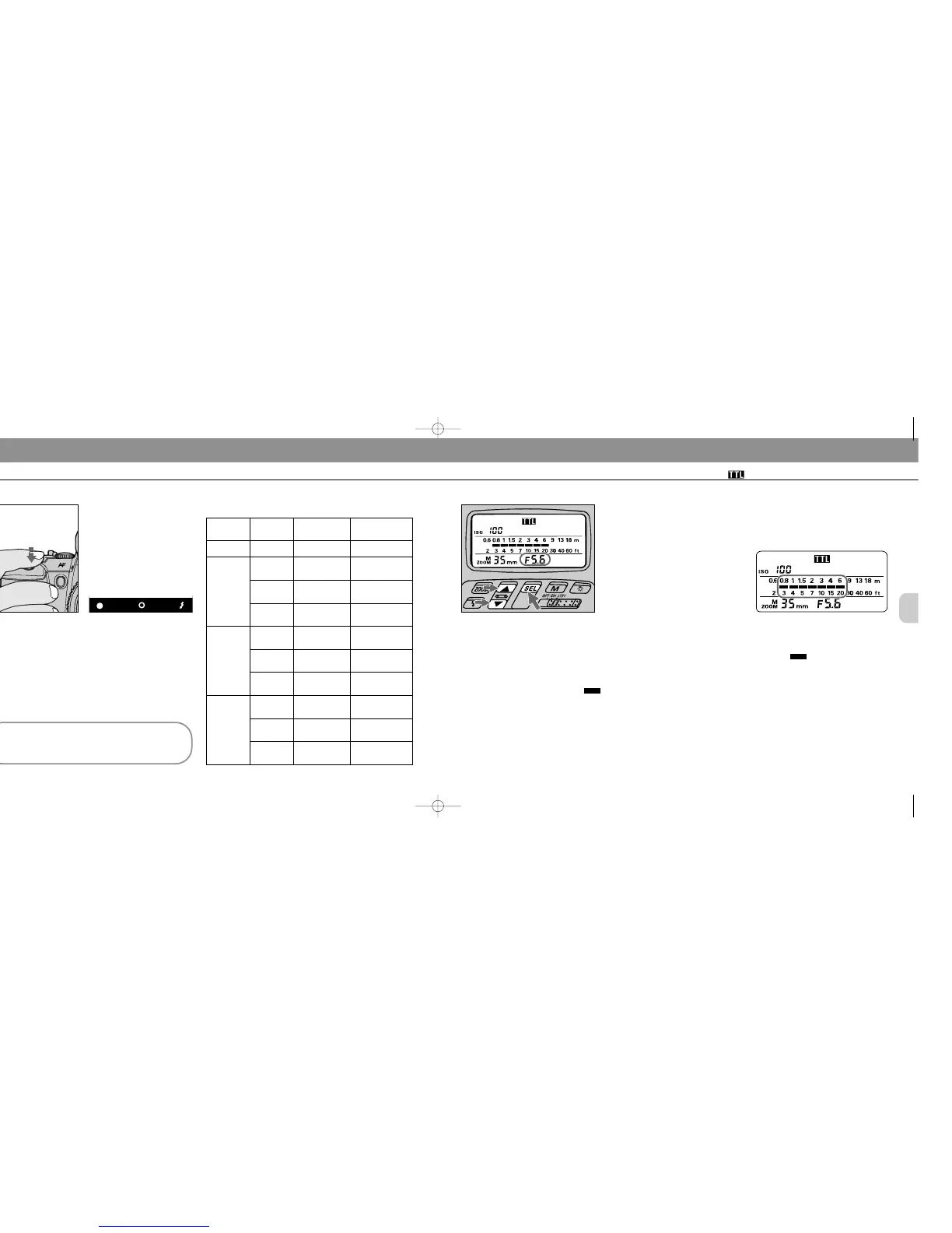Confirm exposure indicator LEDs (+, R, –) in the viewfinder