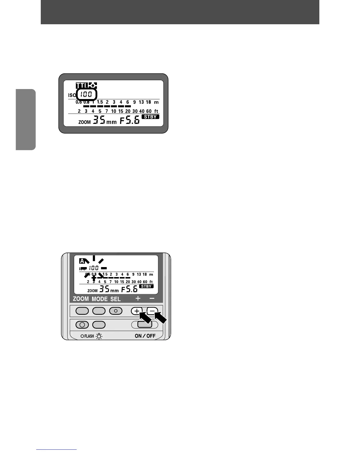 The ISO film speed is automatically set and indicated on the SB-28’s