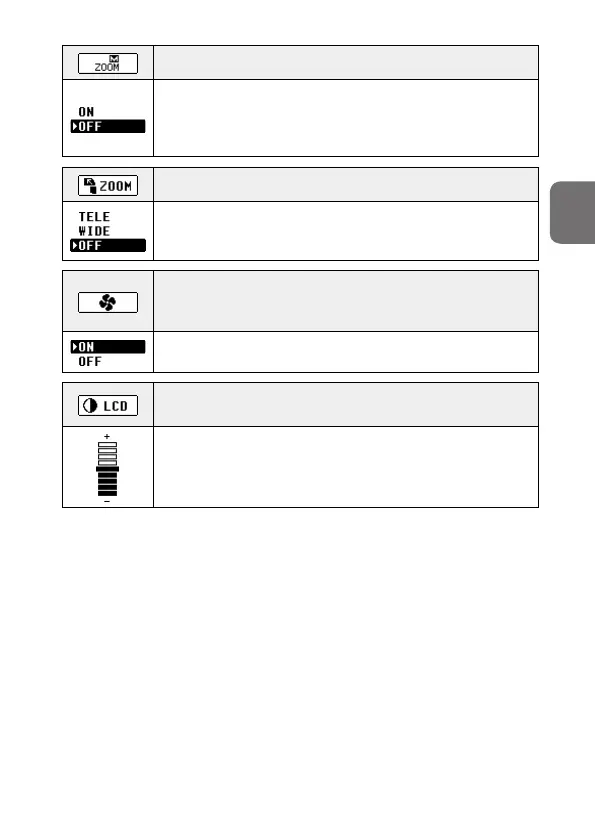 OFF: Power zoom function activated (manual setting of