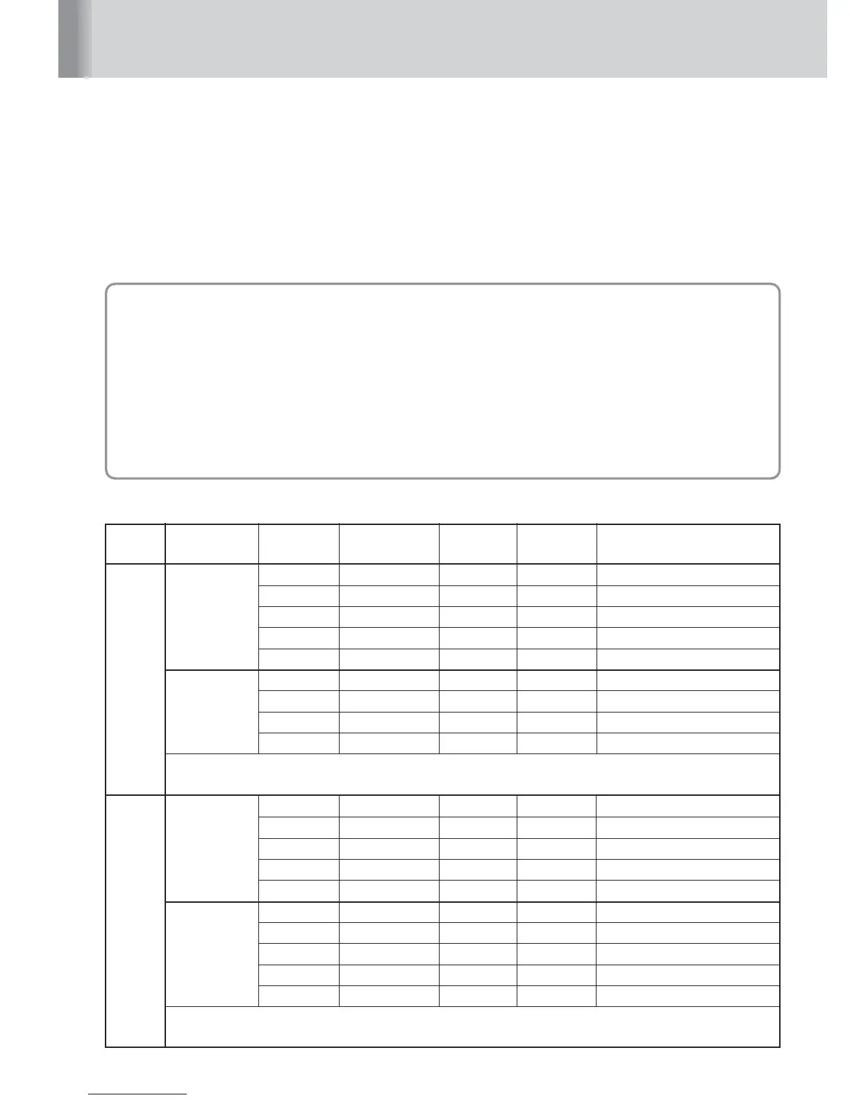 exposure mode/metering system in use. The following tables show the
