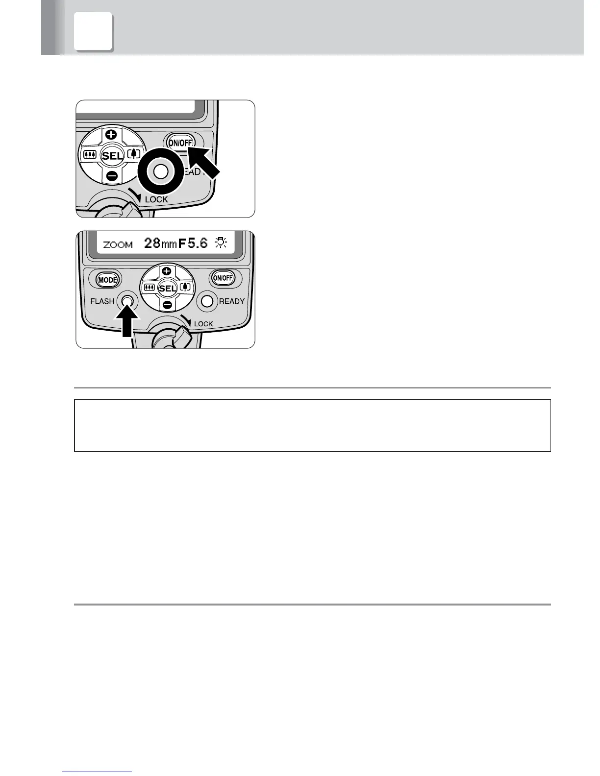 Pressing the b button for approx. 0.3 sec. turns the SB-800 on and the