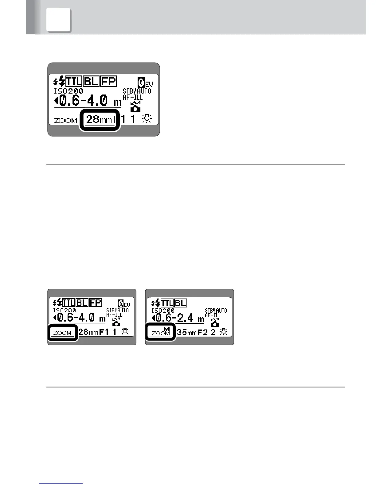 • The zoom-head position is automatically adjusted within the range of 24mm, 28mm,