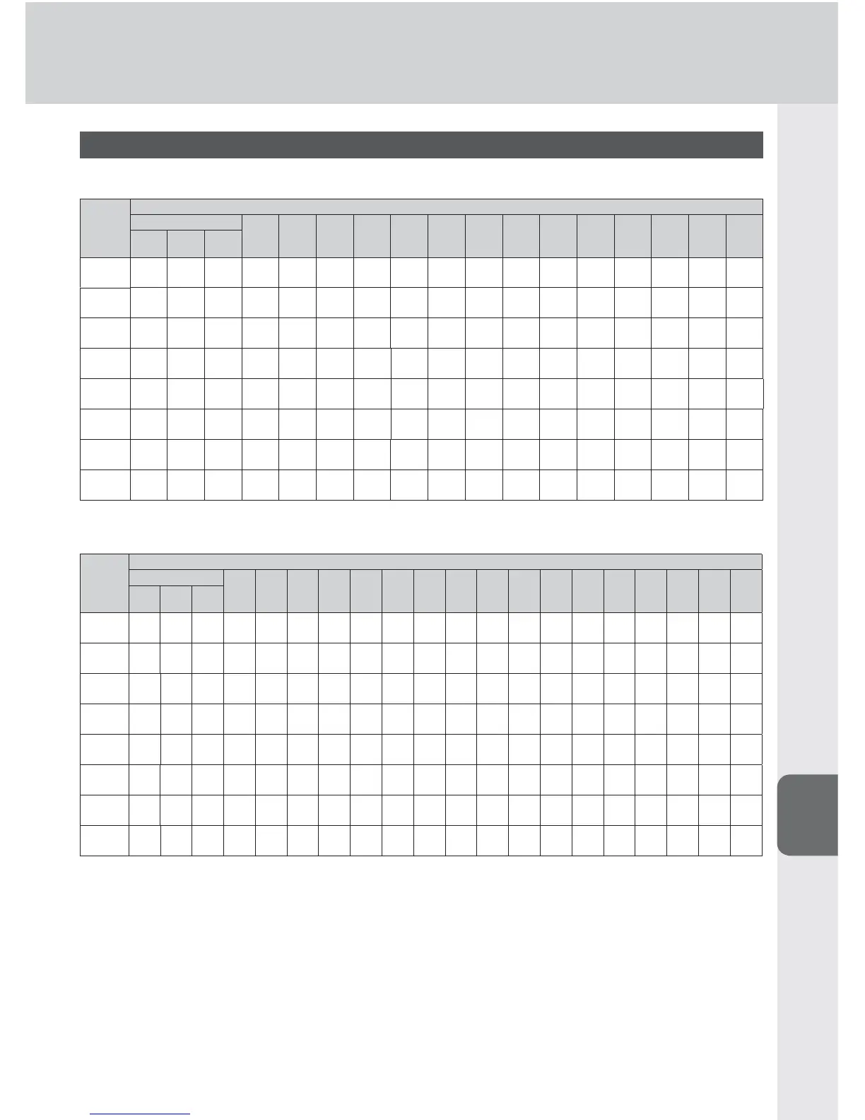 Guide number table (for auto FP high-speed sync)