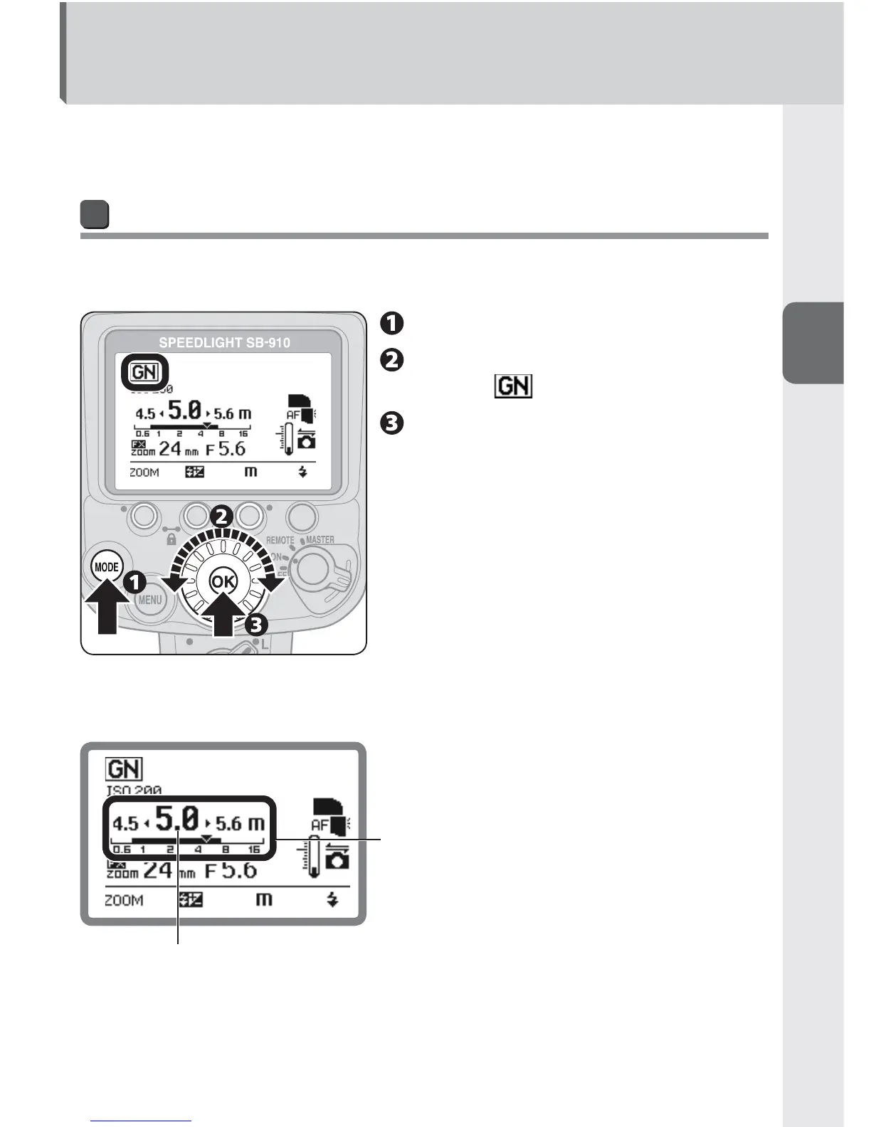 In this fl ash mode, when the fl ash-to-subject distance value is entered, the SB-910