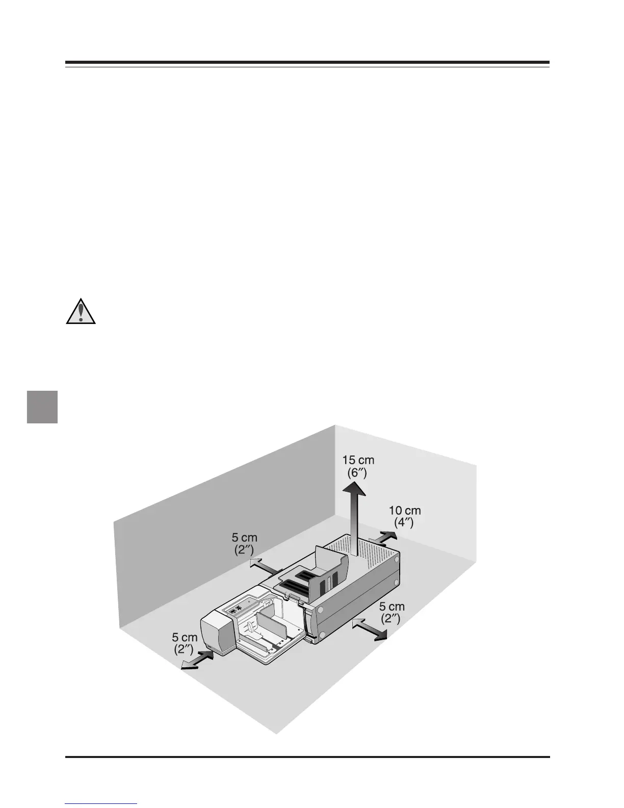 at least 15 cm (6″) of space above the unit and 10 cm (4″) open to the rear. Space requirements when