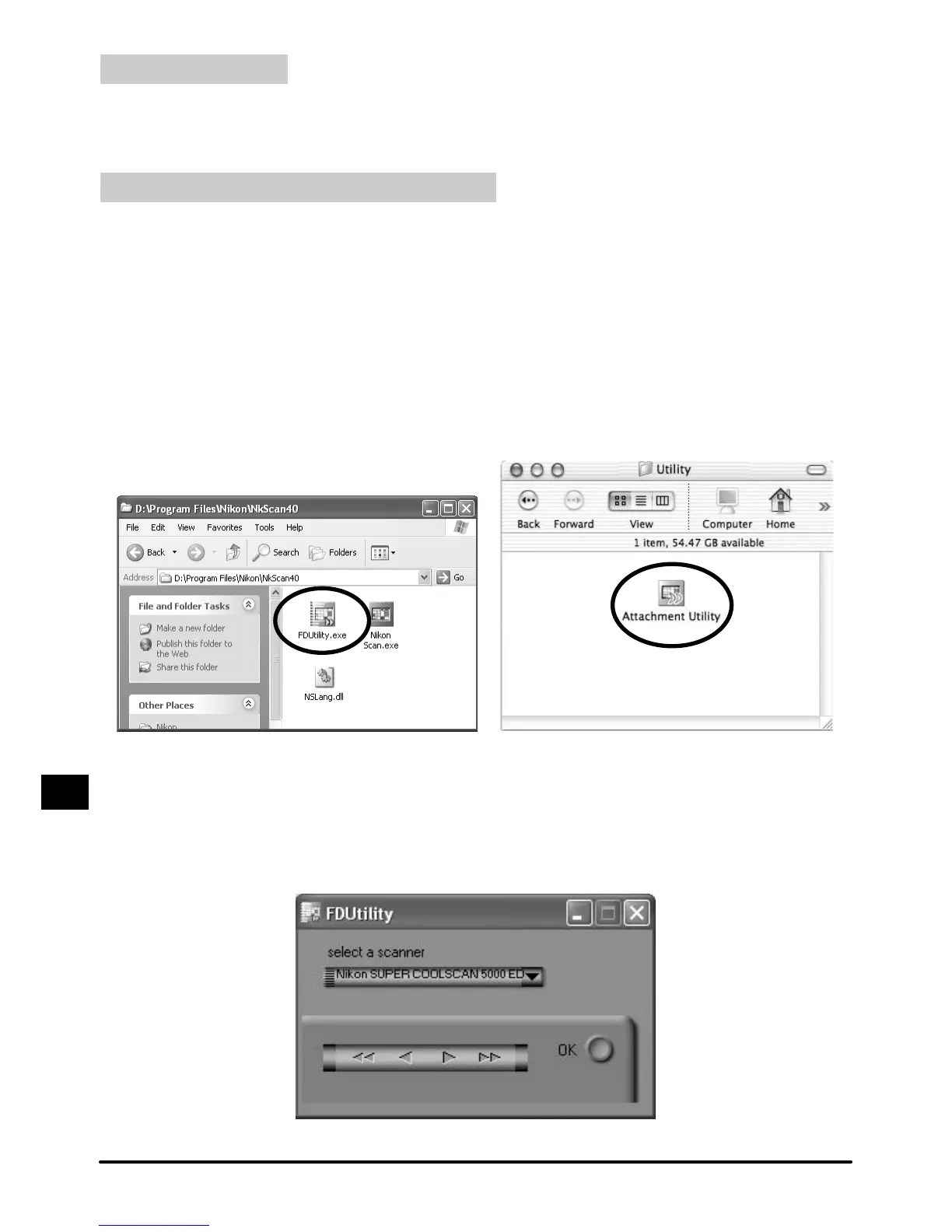 The "attachment utility" (FDUtility) window will appear on the desktop. If more than one scan-