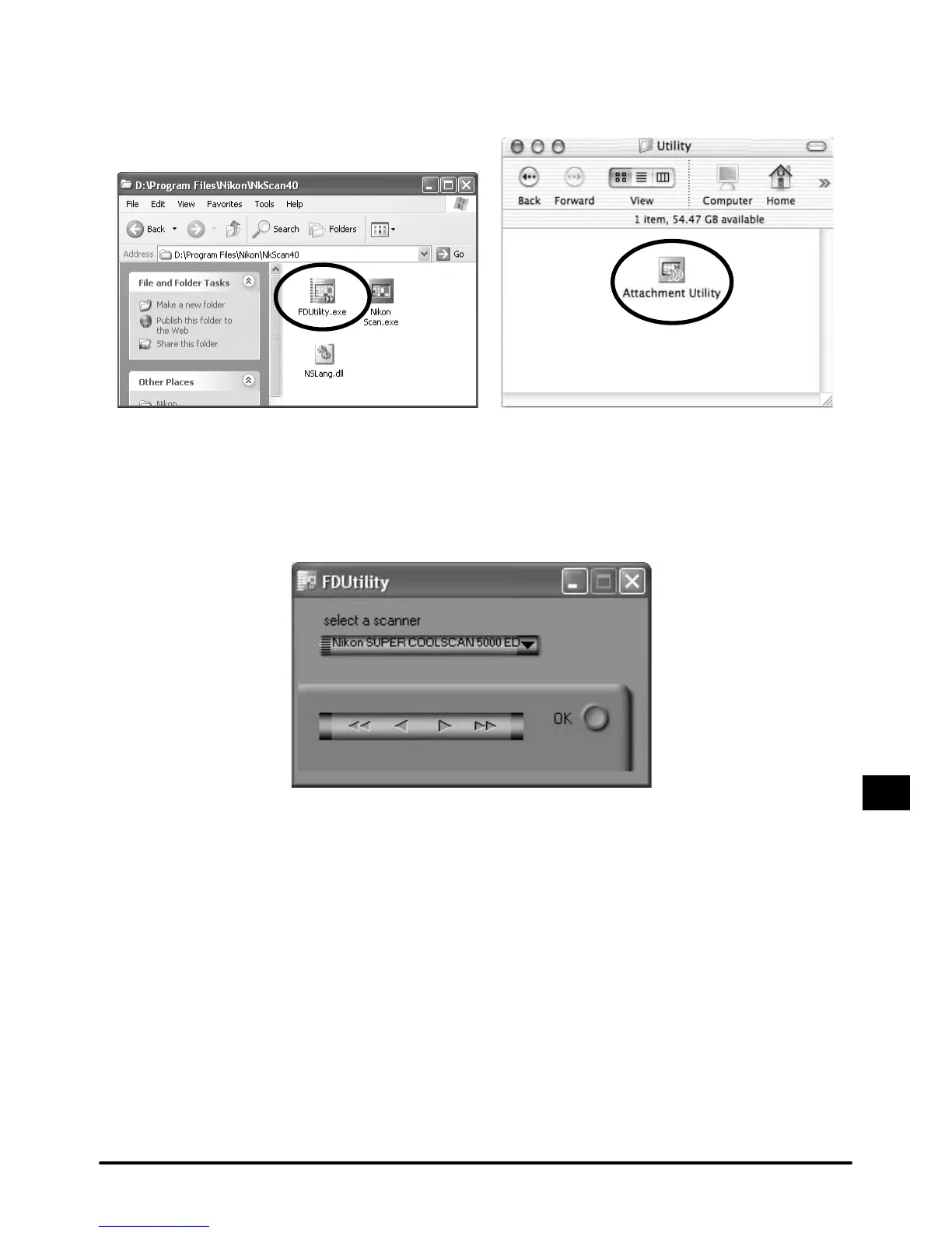 The "attachment utility" (FDUtility) window will appear on the desktop. If more than one scan-