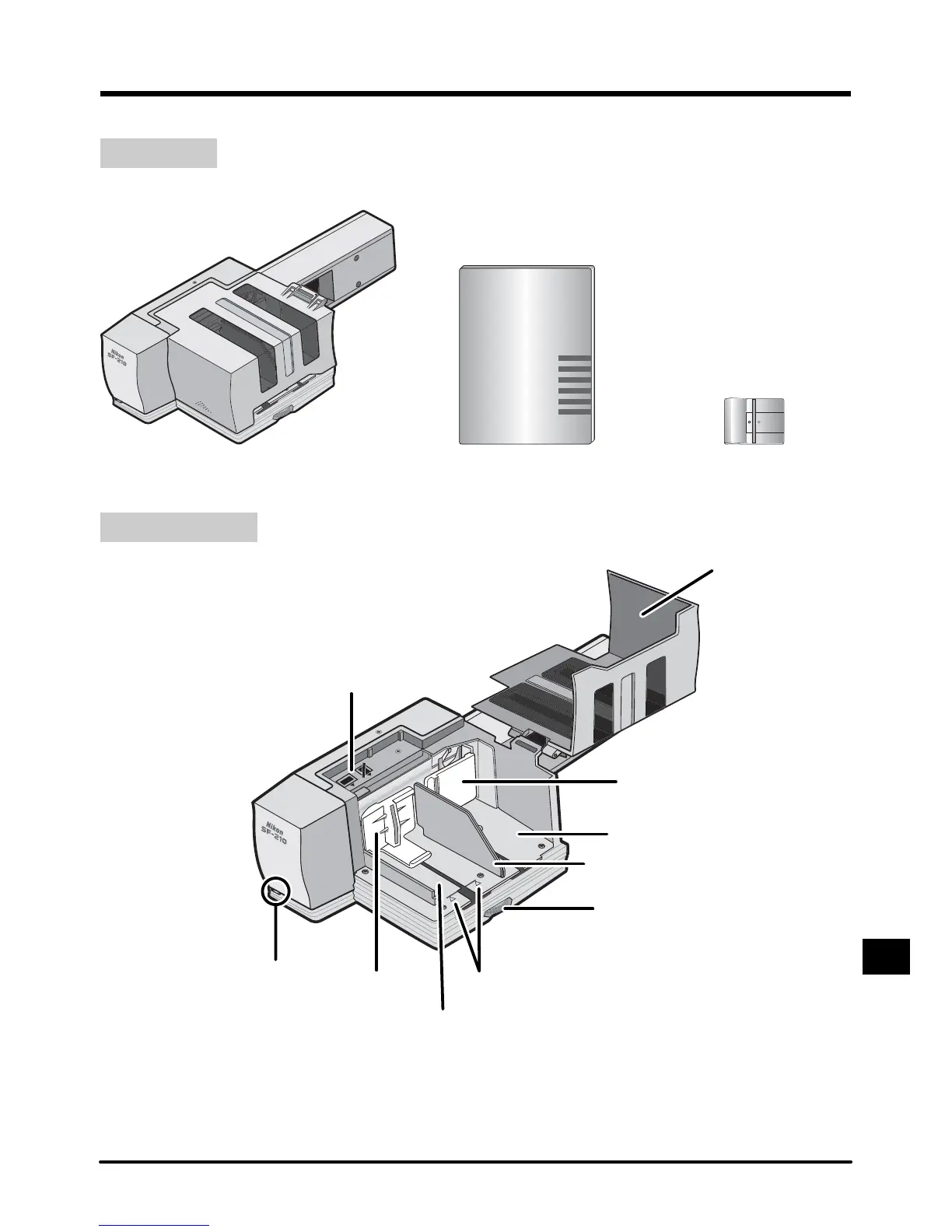 本章列出幻灯片传送装置包装内的各项内容,并且说明SF-210的部件。