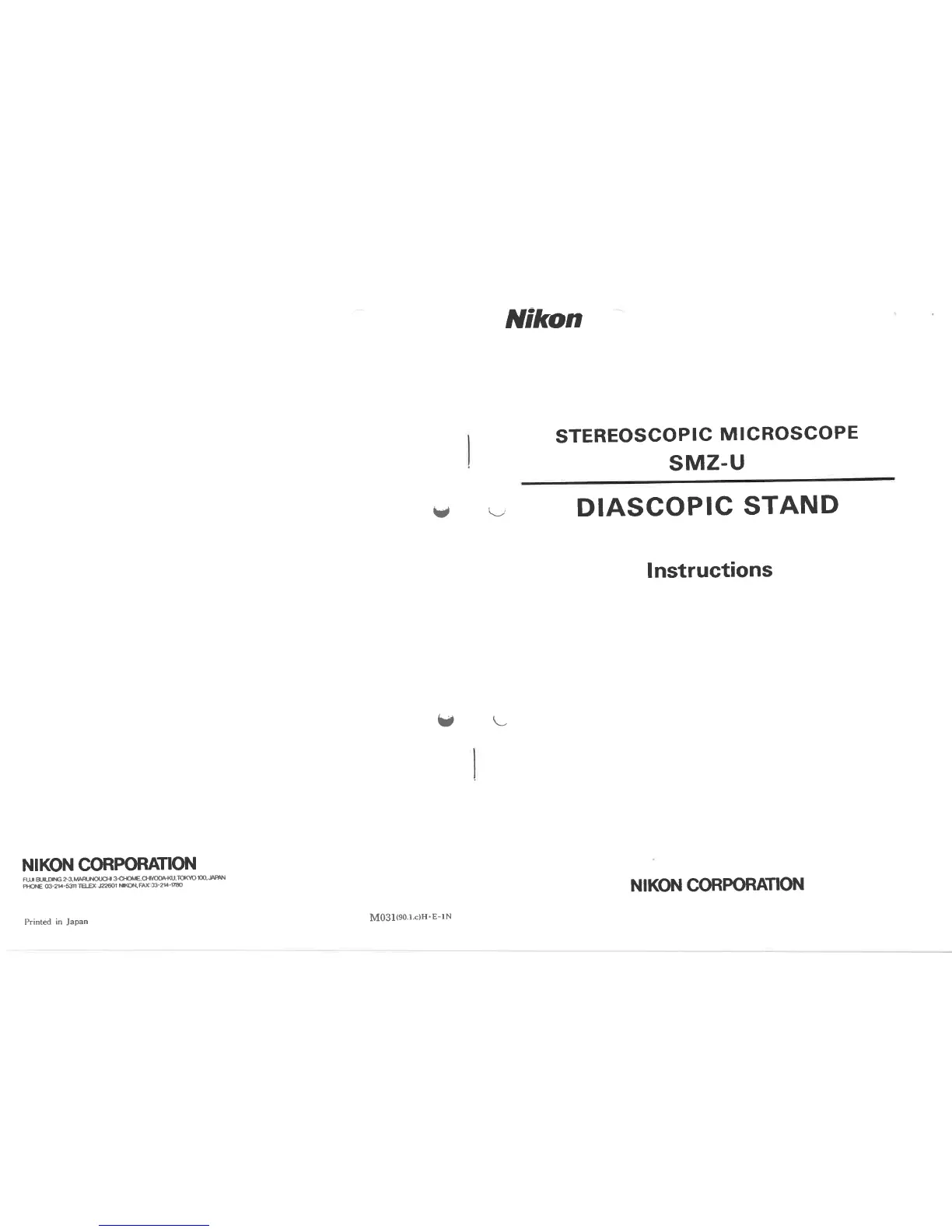 Nikon SMZ-U - Nikon SMZ-U Diascopic Stand Instructions