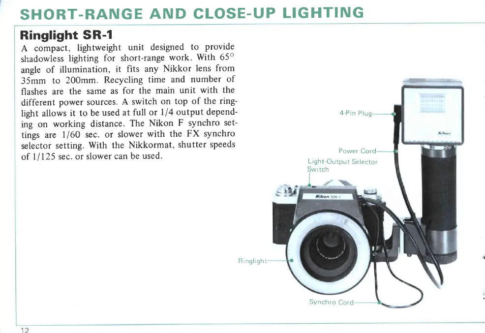Nikon Speedlight - SHORT-RANGE AND CLOSE-UP LIGHTING; Ringlight SR-1 Operation