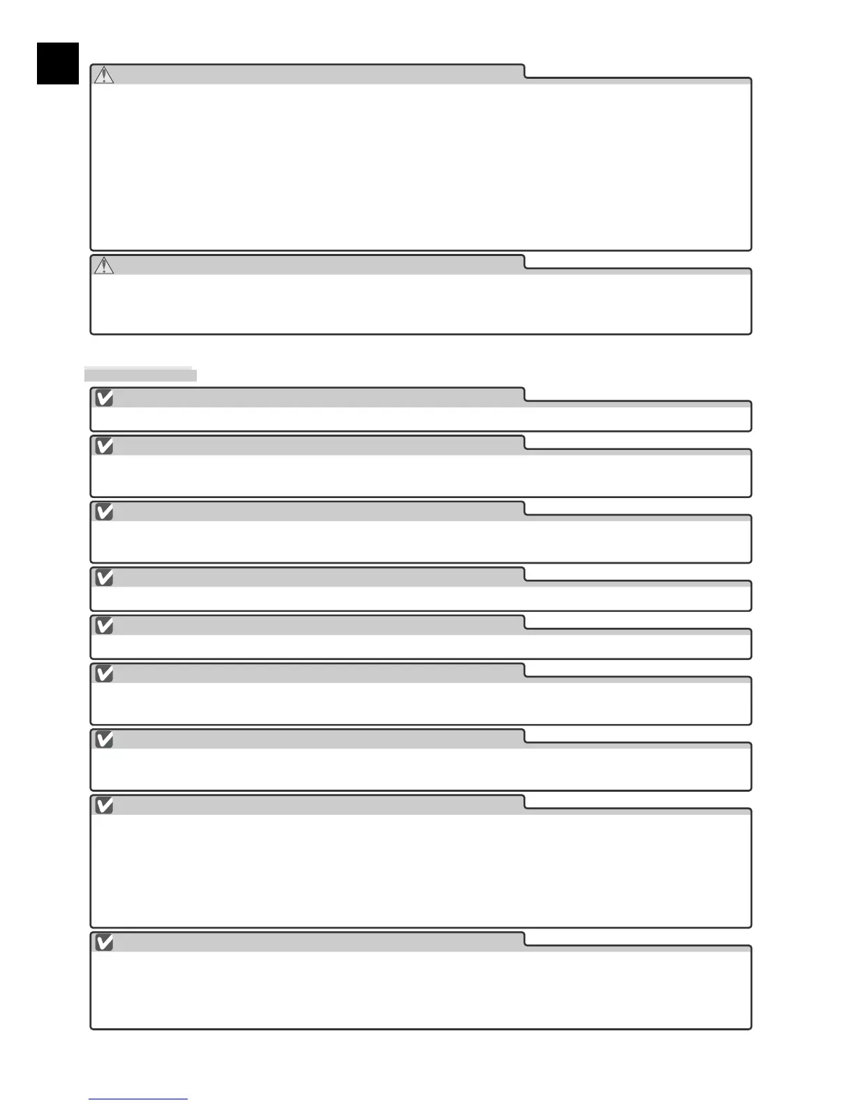 • Do not handle the plug with wet hands. Failure to observe this precaution could cause electric shock.
