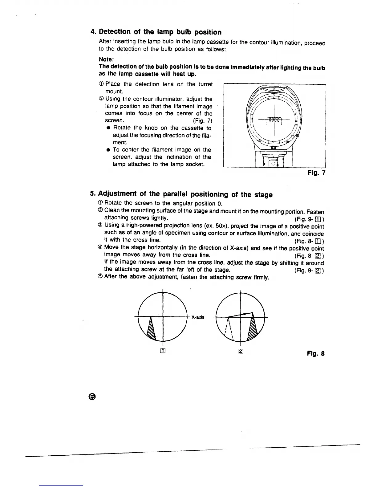 Nikon V-12A - Detection of the Lamp Bulb Position; Adjustment of the Parallel Positioning of the Stage