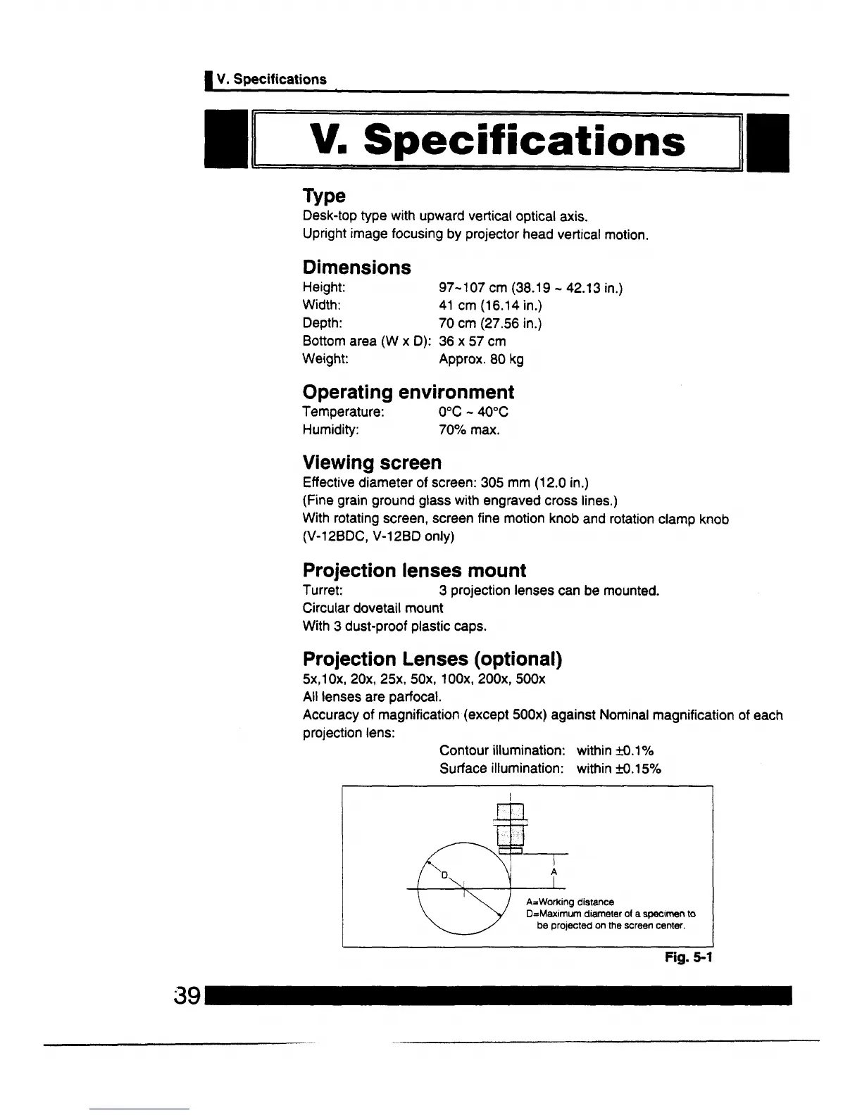 Nikon V-12BDC - Technical Specifications; General Unit, Screen, and Lens Specifications