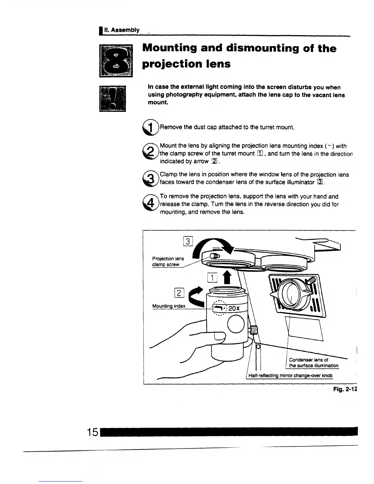 Nikon V-12BDC - Assembly: Mounting and Dismounting of the Projection Lens