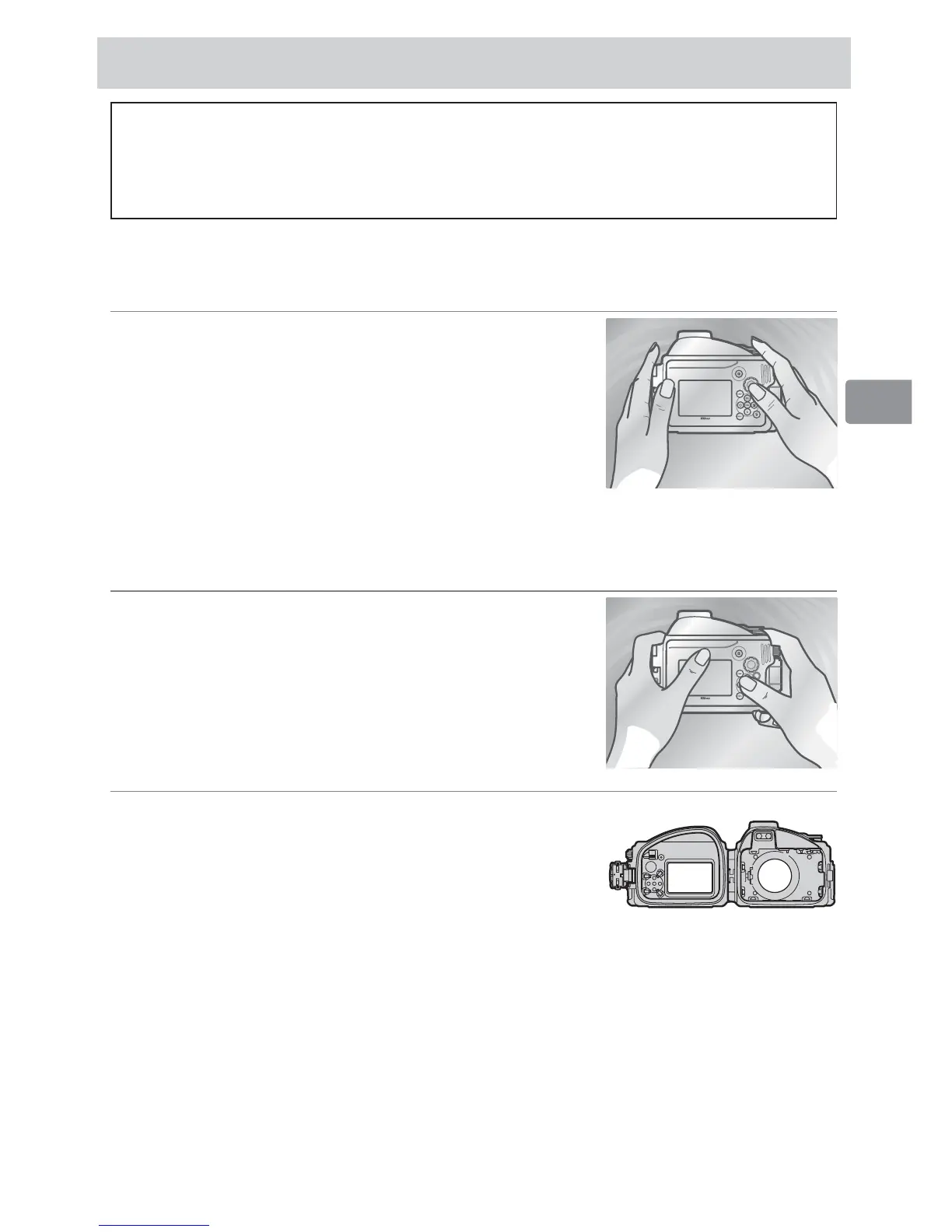 ご使用の前に、カメラが正常に作動すること、および水漏れしないことを必ずご確認ください。