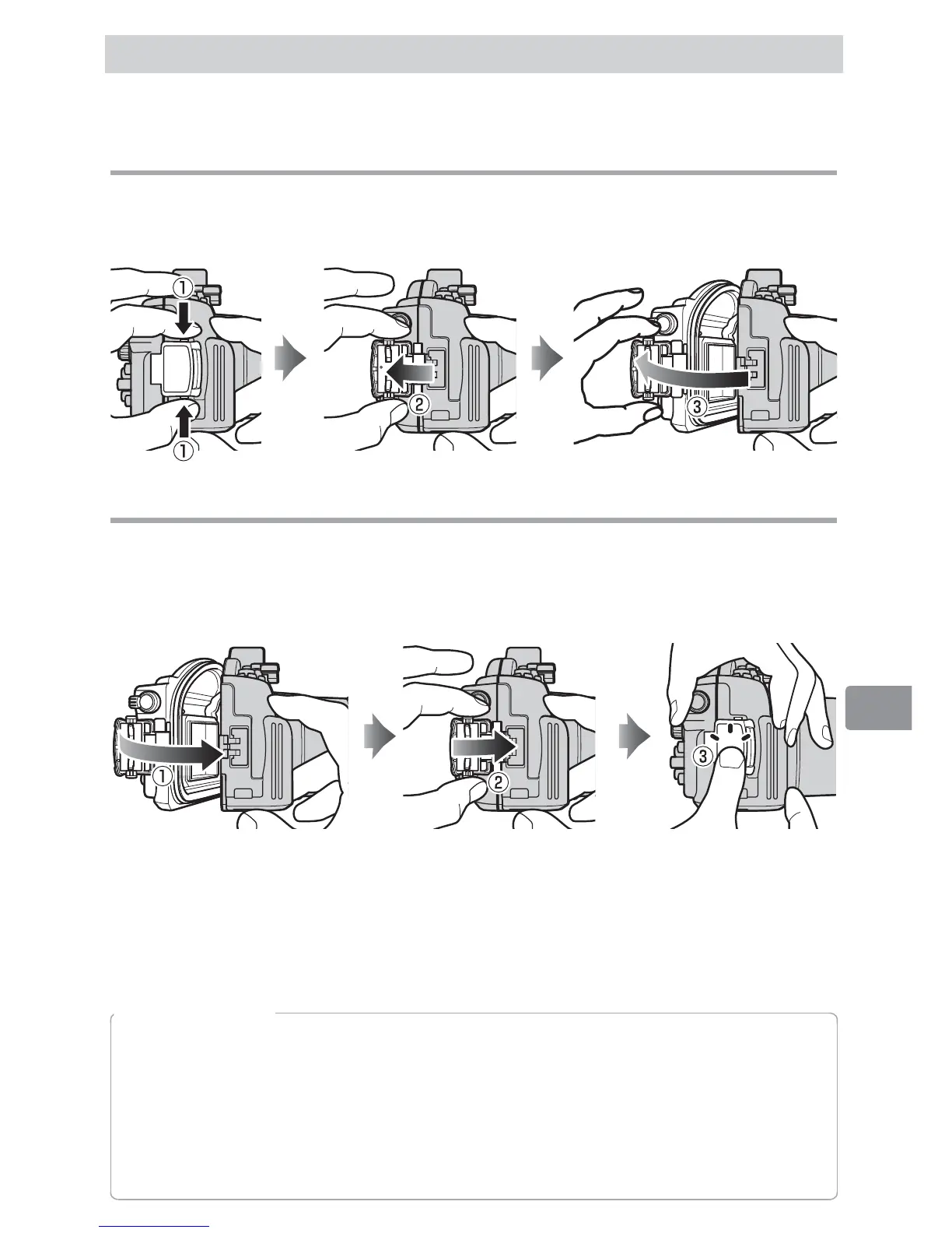 Nikon WP-N1 - 使用锁扣; 解除防水罩的锁定; 锁定防水罩