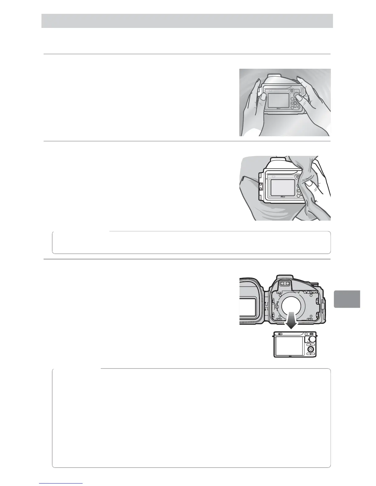 取出相機並用一塊乾的軟布將防水罩的內部