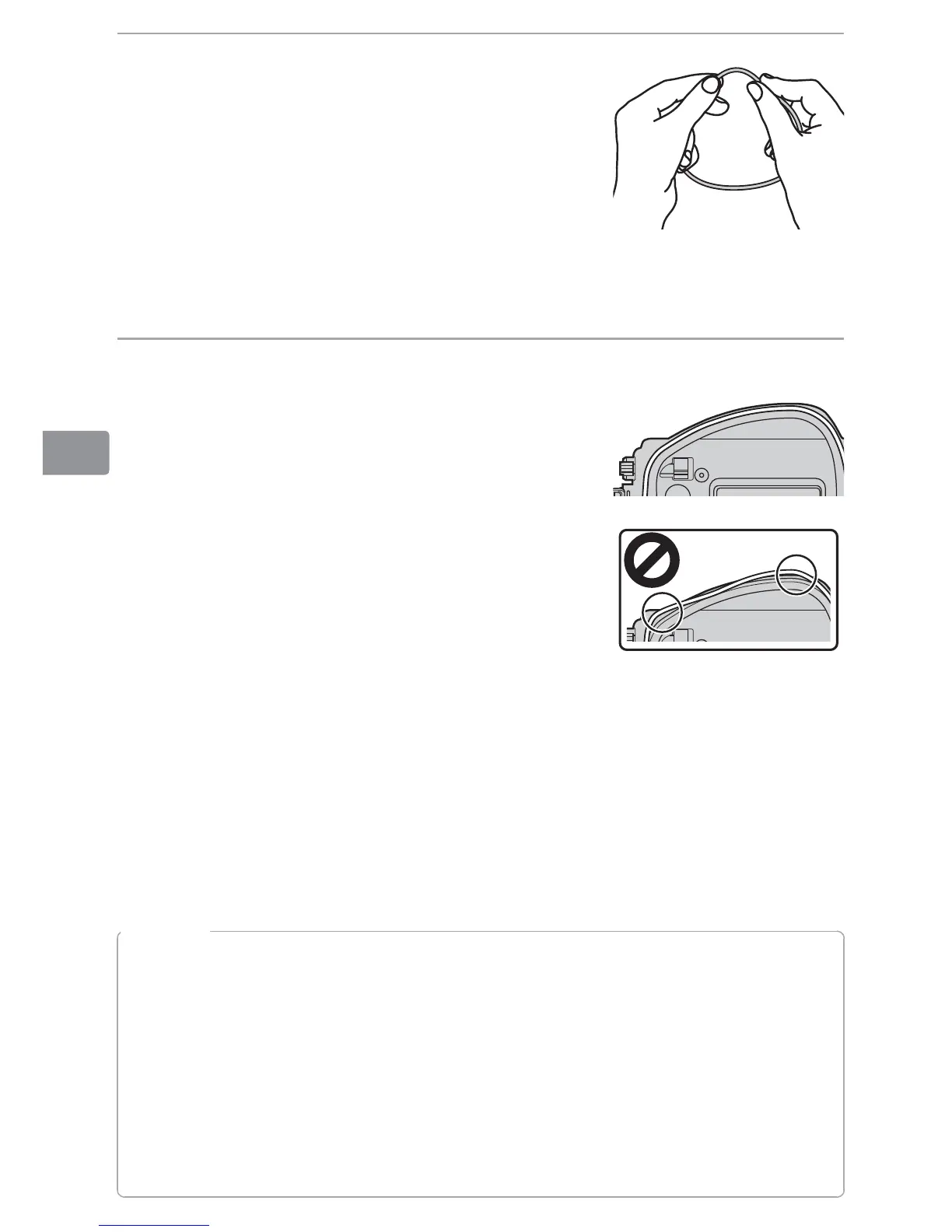 not use cloth or paper, as these may leave fi bers on the O-ring. Note