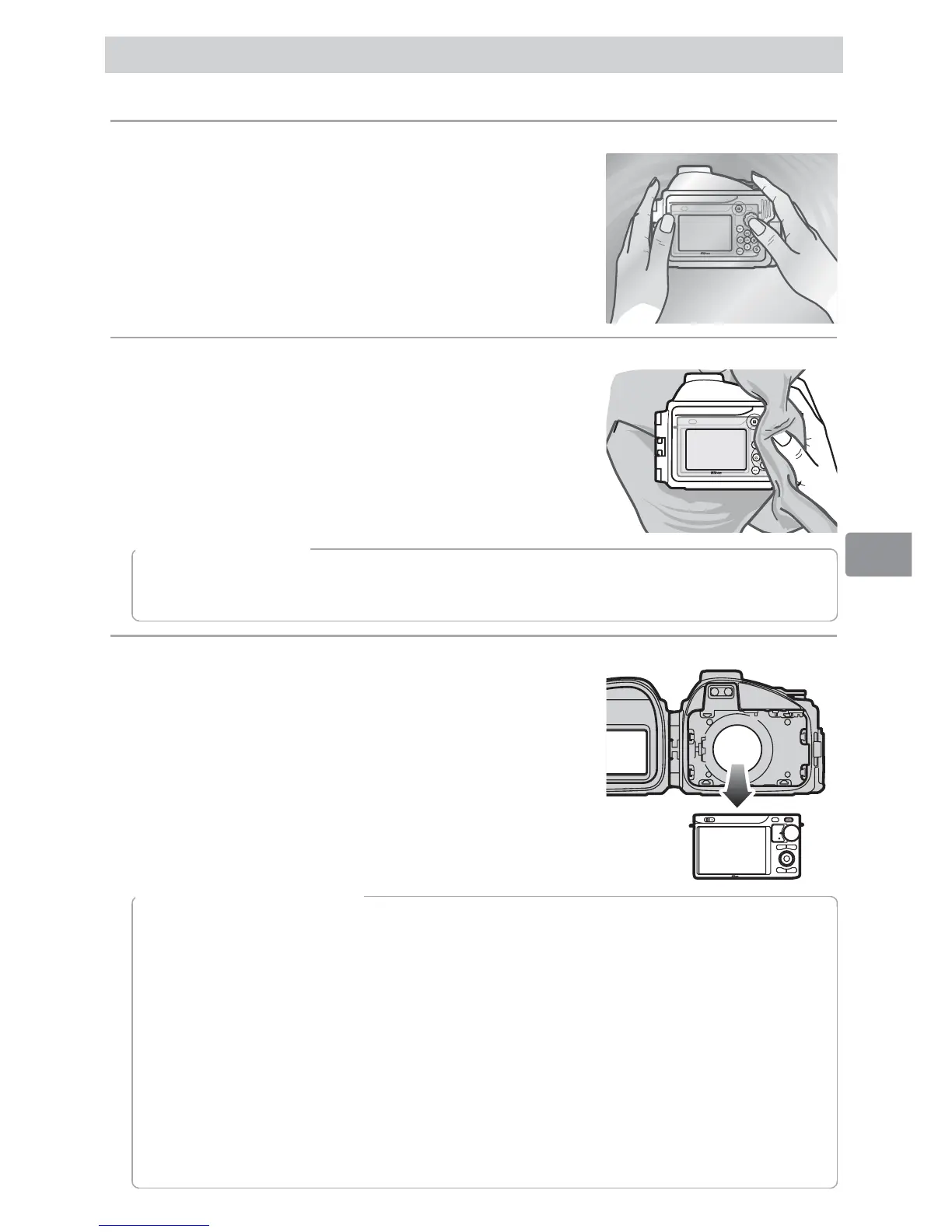 caisson ou sur l’appareil photo. Si des gouttes tombent sur l’appareil photo ou dans le caisson