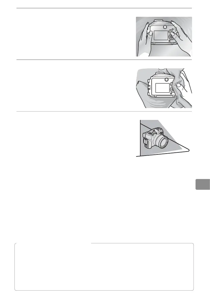 請使用吹氣球、刷子或濕軟布去除防水罩內部的雜質。液體可用濕軟布清
