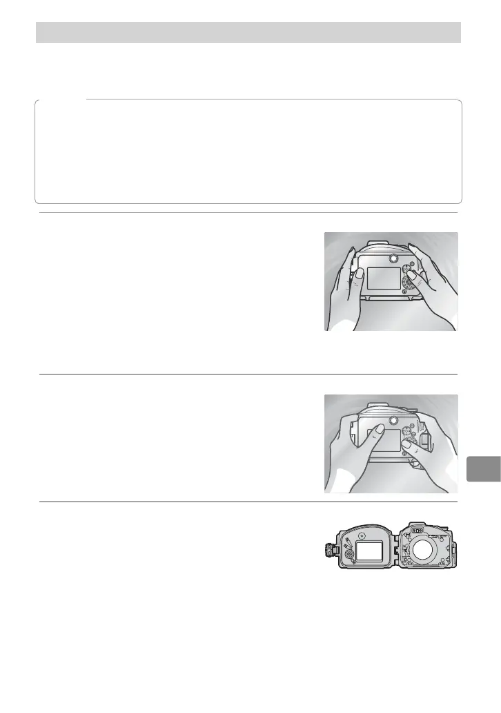 케이스를 물에 담그고 2, 3 분간 수중에서