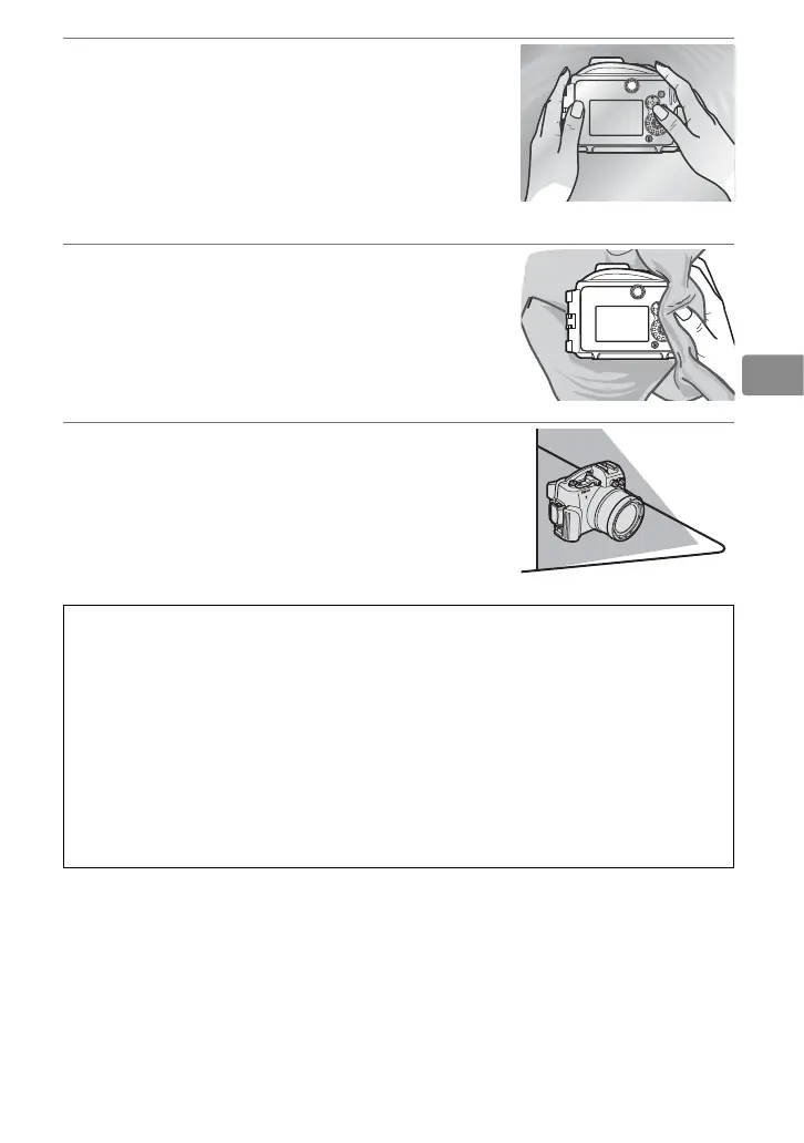 光に当てたりしないでください。ウォータープルーフケースや O リングが劣化し、水漏れの