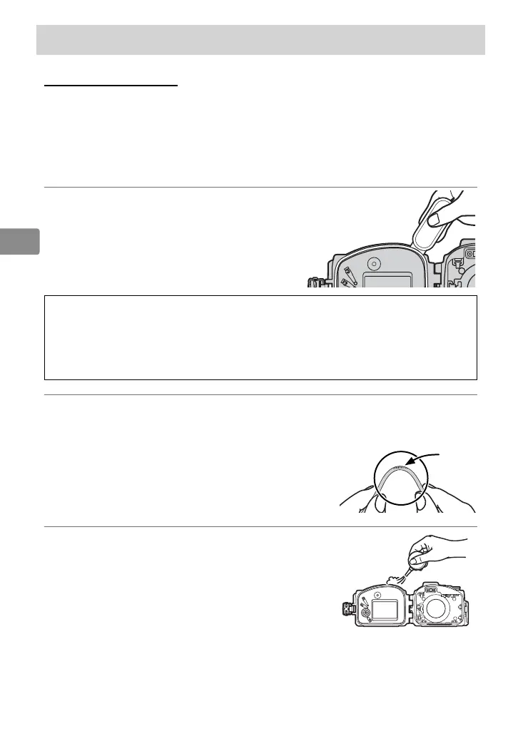 ・ O リング接触面や水滴ガードの表面の異物も取り除きます。