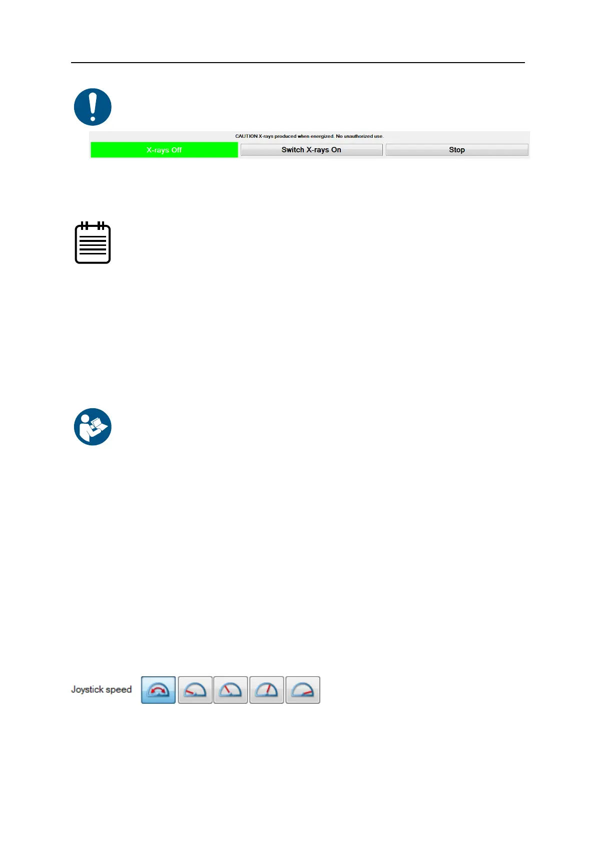 • Switch X-rays on and off (on page 33)