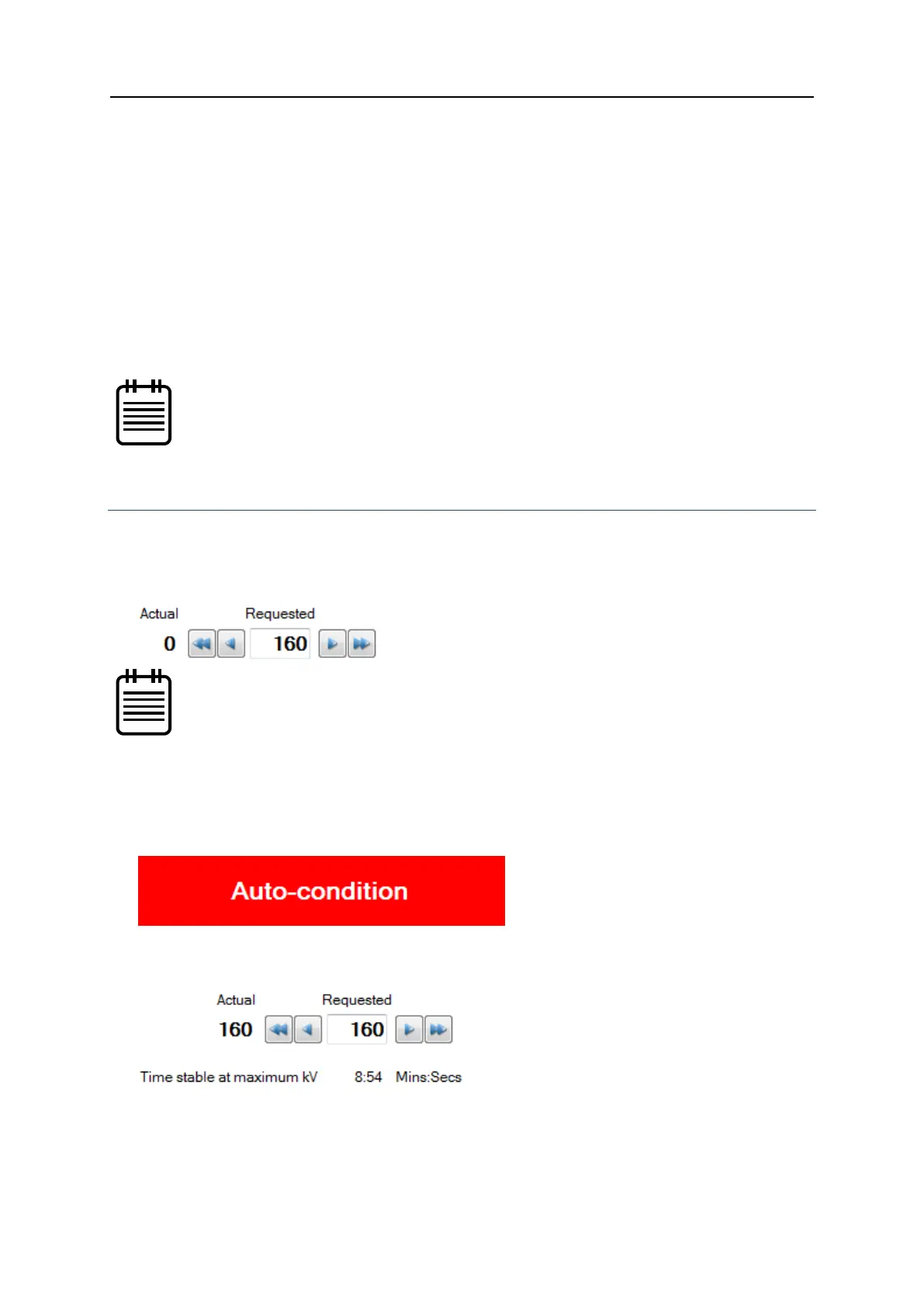 Conditioning of the X-ray source is required to achieve a stable operating voltage, and hence