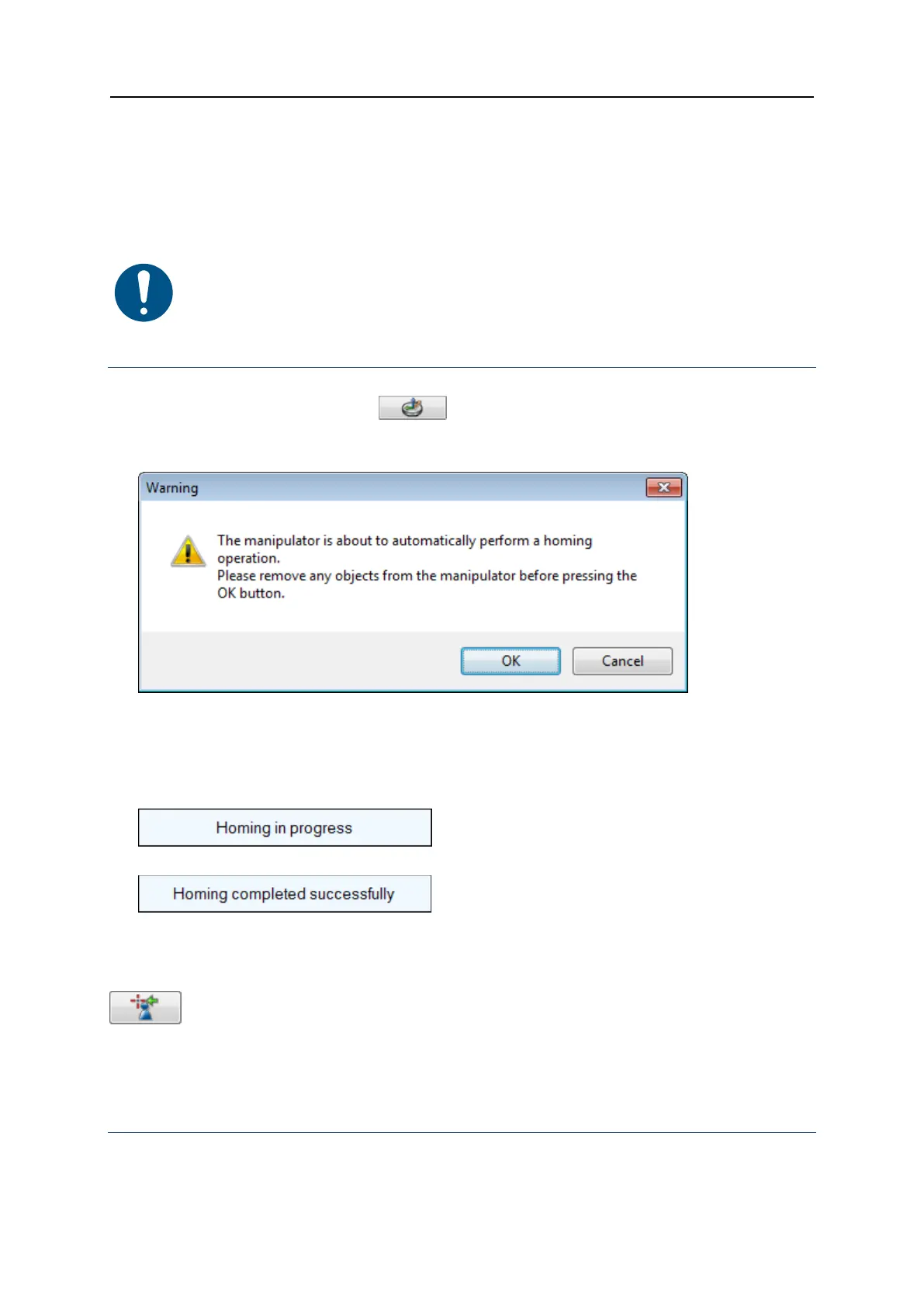Before the manipulator in the inspection system can be used, it must be homed. This is
