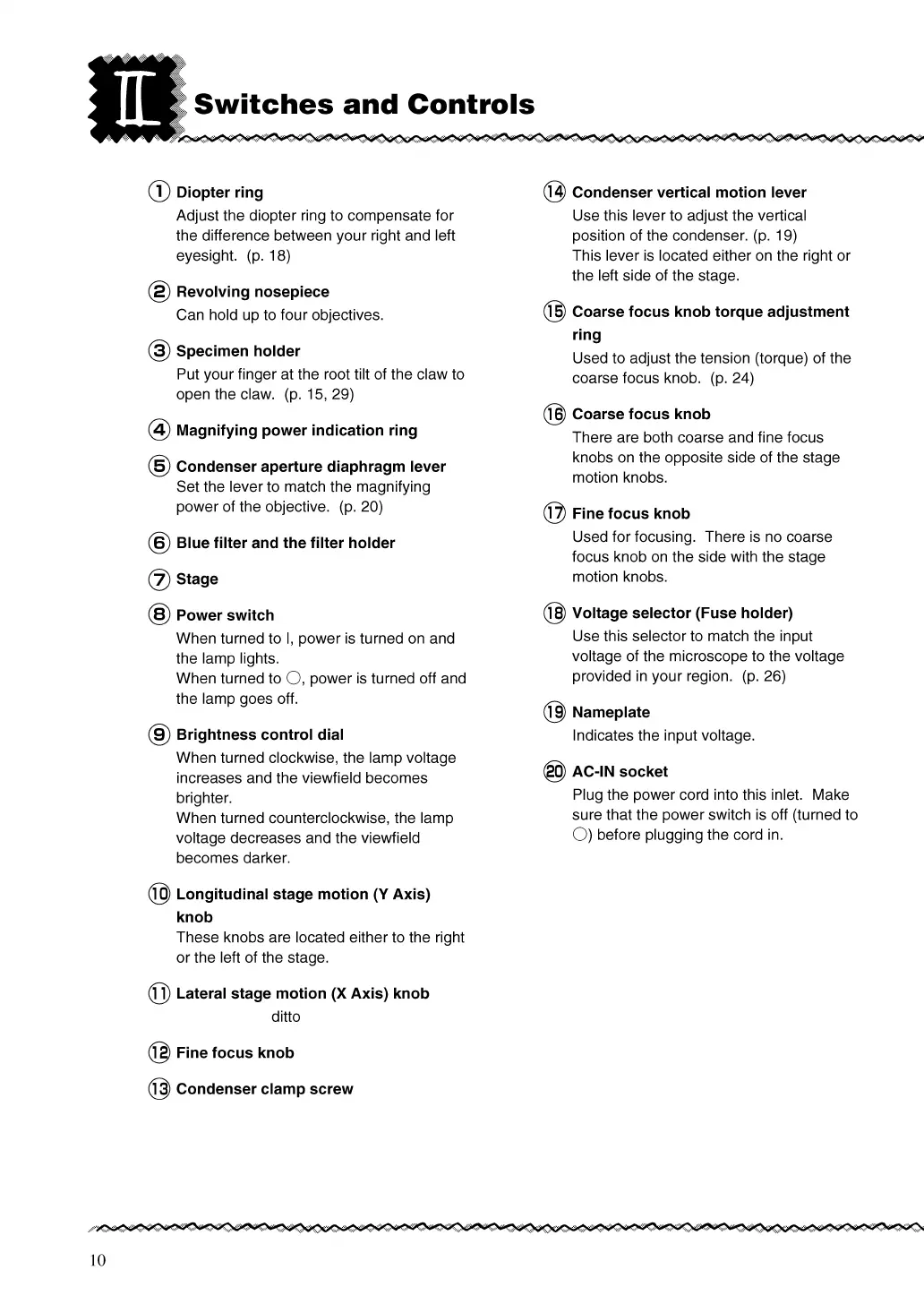 Nikon YS100 - Switches and Controls
