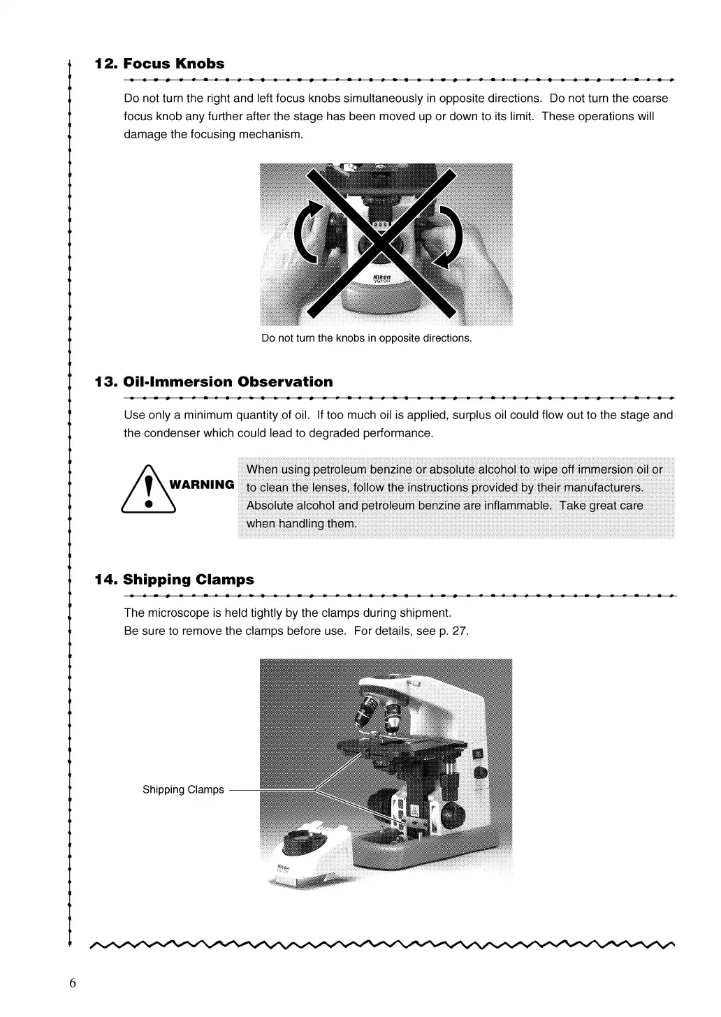 Nikon YS100 - Focus Knobs; Oil-Immersion Observation; Shipping Clamps