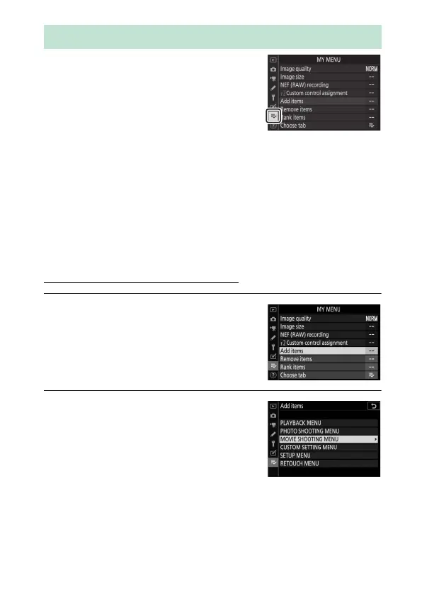 In My Menu (O), highlight Add items