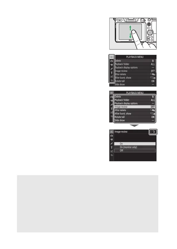 To exit without changing settings, tap Z.