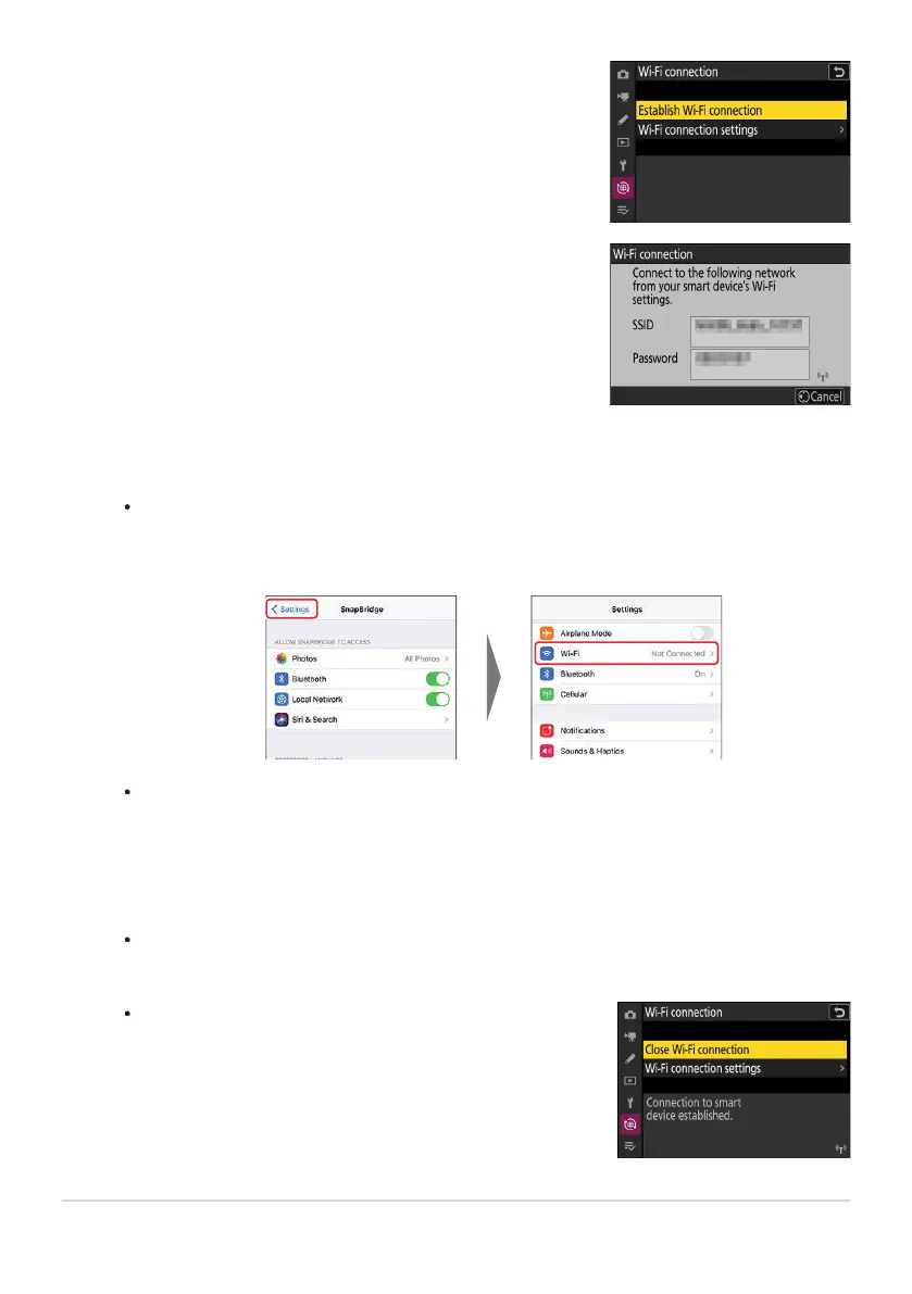 Camera: Select [Connect to smart device]> [Wi-Fi