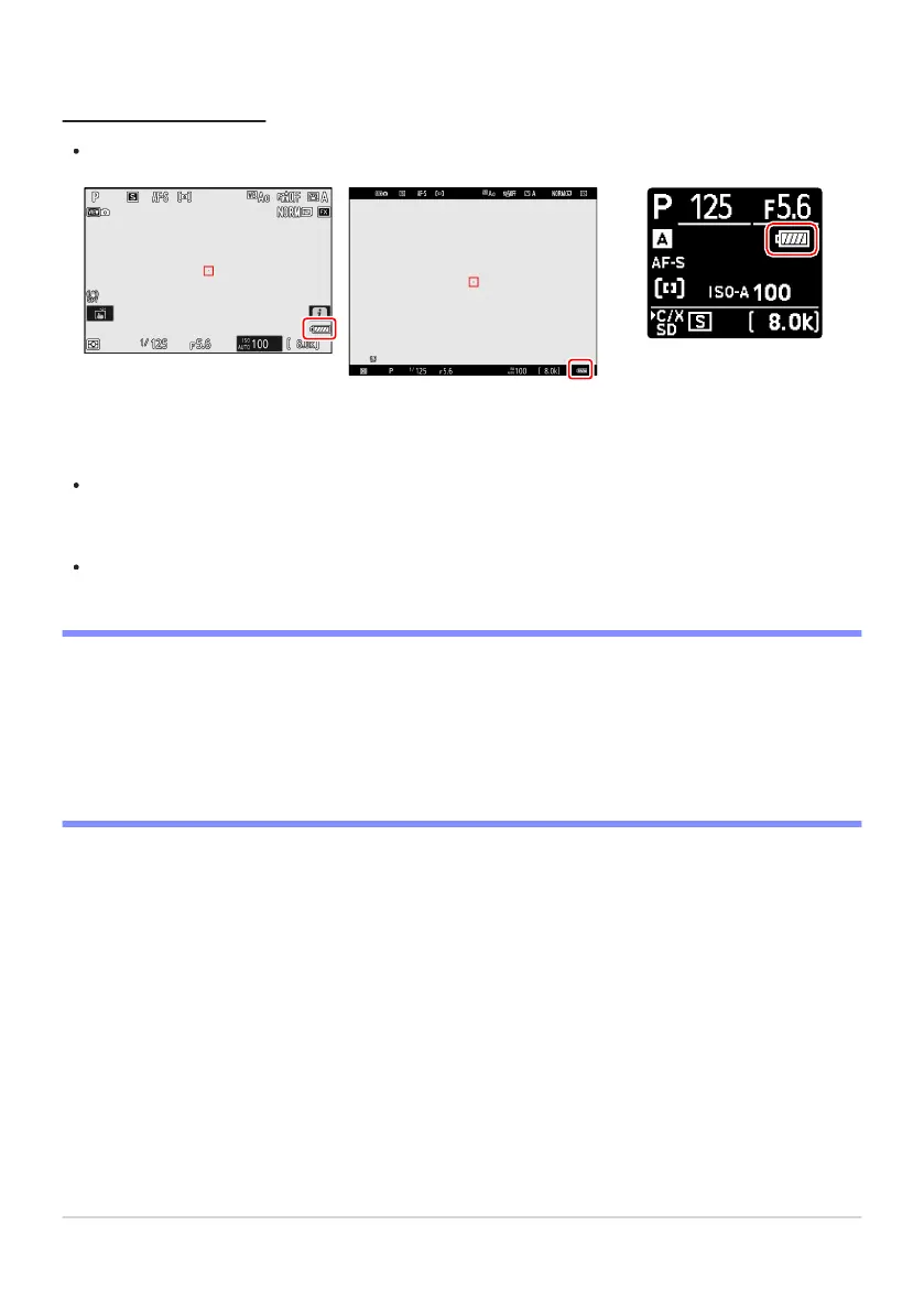 ery level is shown in the shooting display and control panel while the camera is on.