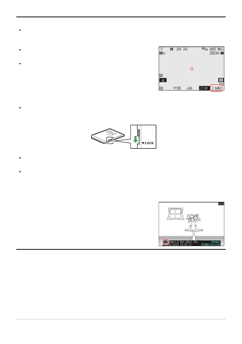 displayed and no picture will be recorded. Unlock the memory card before attempting to take or