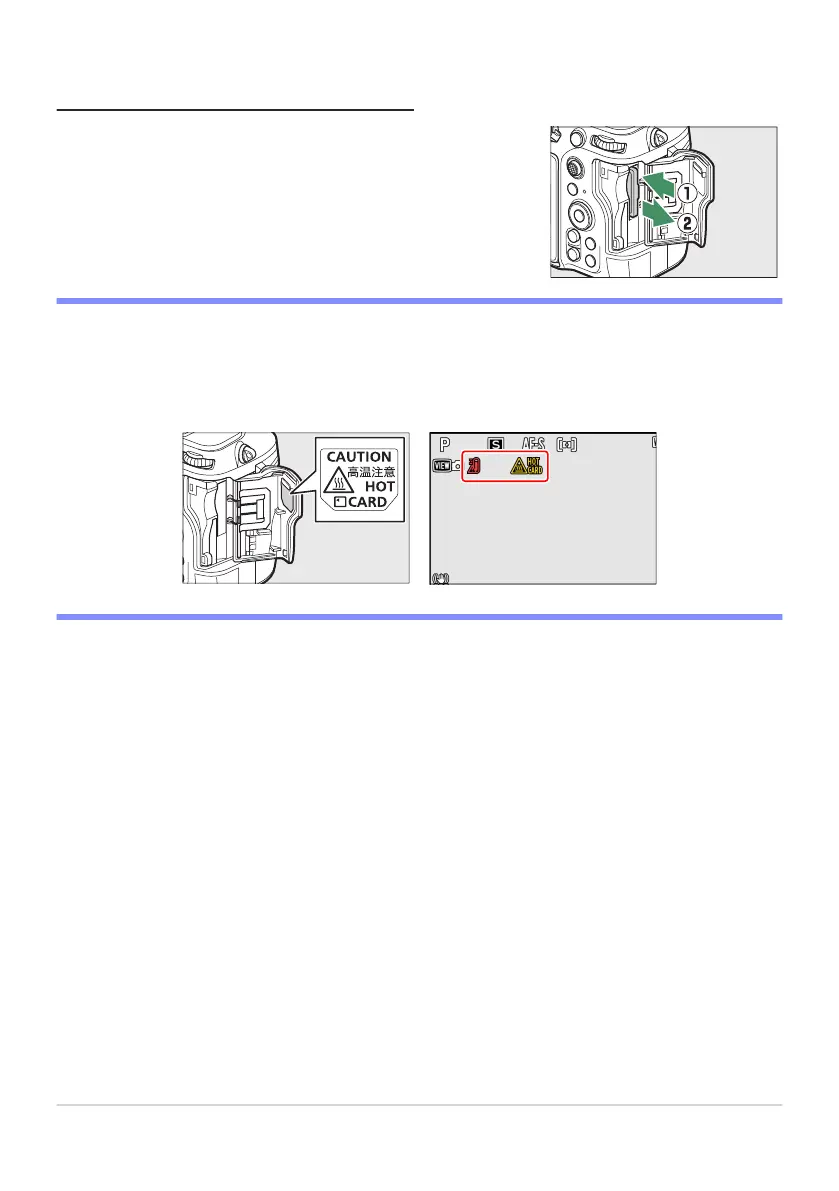 inserted in the camera. Wait for any high-temperature warnings to clear from the shooting display