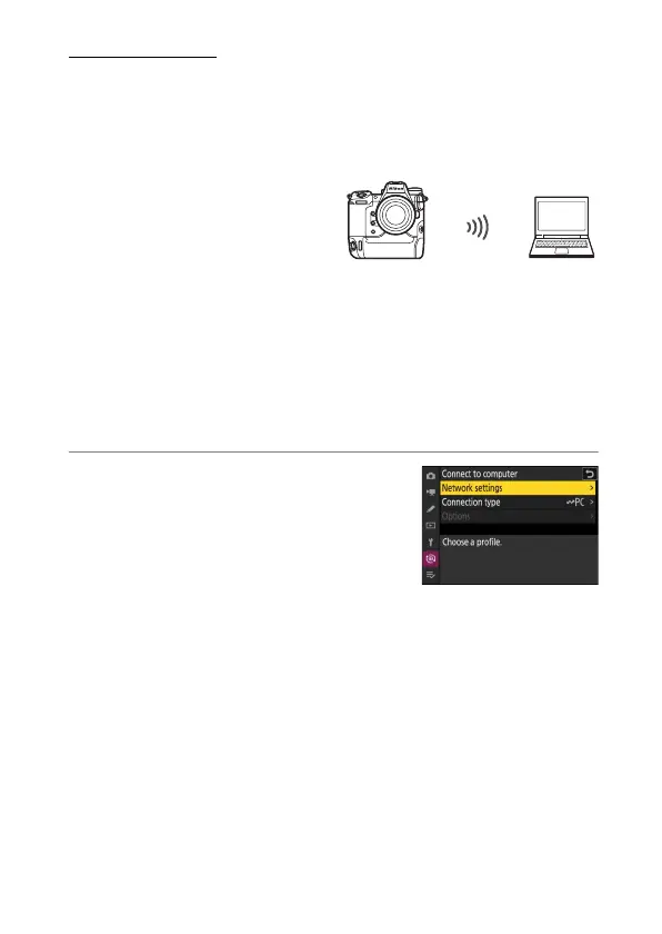 The camera can connect to computers either by direct wireless link