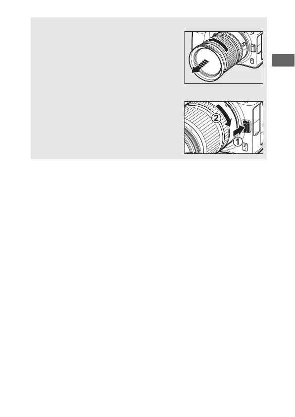 press and hold the lens release button (q)